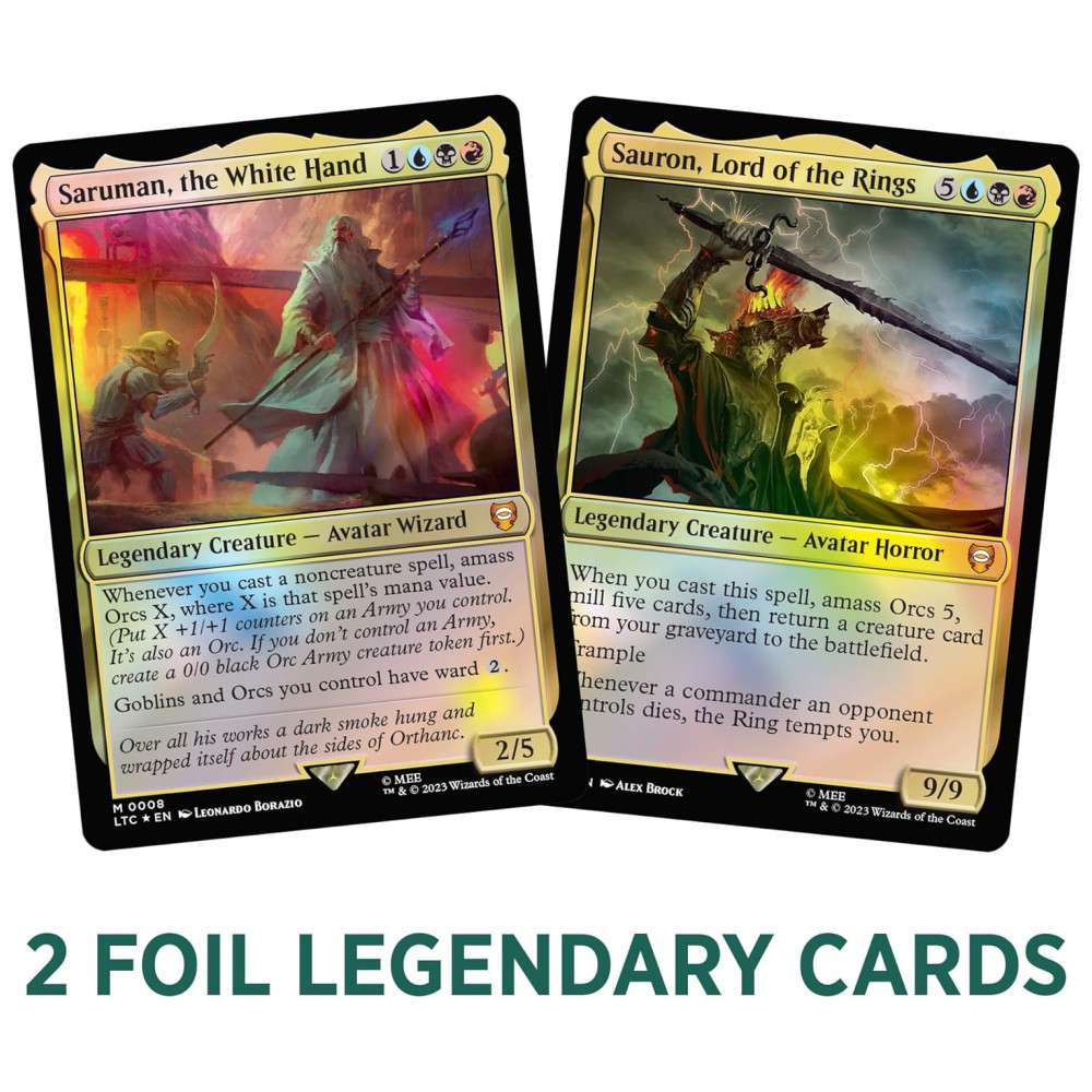 Com o Commander Deck “Hosts of Mordor”, você pode viver aventuras épicas e participar de batalhas memoráveis com seus personagens favoritos de O Senhor dos Anéis. Este deck oferece uma maneira emocionante de explorar a jogabilidade popular de Commander, combinando a estratégia de Magic: The Gathering com a narrativa envolvente da Terra-média. Prepare-se para liderar suas forças e lutar pelo destino deste mundo lendário!