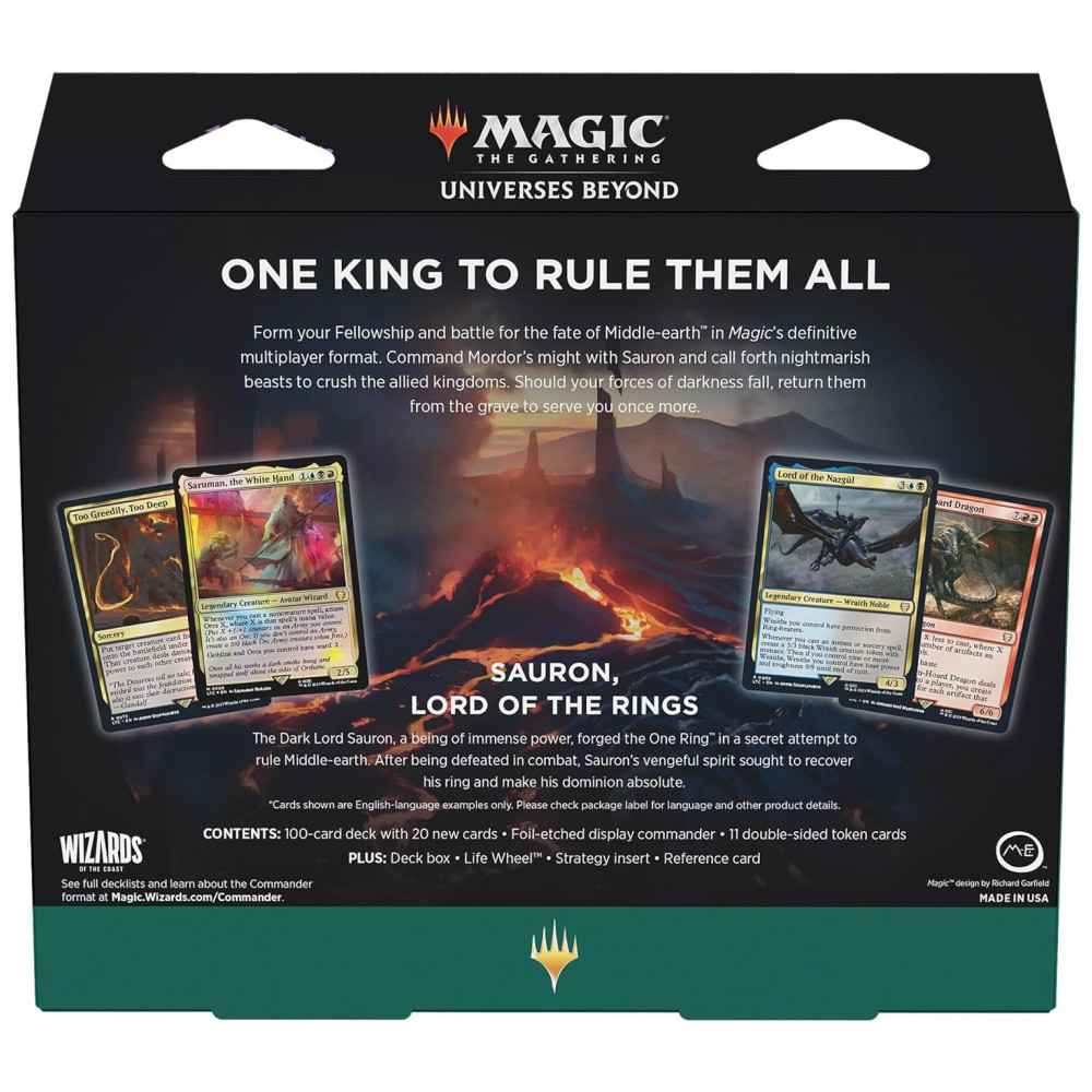 Explore a magia de Magic: The Gathering com a rica história de O Senhor dos Anéis no Commander Deck temático “Hosts of Mordor” de The Lord of the Rings: Tales of Middle-earth. Este deck de Commander oferece uma experiência de jogo emocionante e pronta para jogar, permitindo que você mergulhe diretamente em batalhas épicas pelo destino da Terra-média.