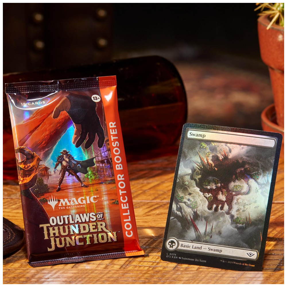 Saia para o pôr do sol com um Outlaws of Thunder Junction Collector Booster Box cheio de tesouros de Magic: The Gathering. Cada caixa contém 12 Outlaws of Thunder Junction Collector Boosters, cada um com 15 cards de Magic: The Gathering e 1 token de dupla face em Traditional Foil. Dentro de cada pacote, você encontrará 5 cartas de raridade raras ou superiores, 5 pouco frequentes, 4 comuns e 1 Full-Art Western Landscape Land. Além disso, cada booster inclui 6 cartões alt-border, entre 10 a 12 cartões Traditional Foil brilhantes, e pode até conter um cartão com um tratamento especial de folha exclusivo para Collector Boosters. O cartão de Últimas Notícias Textured Foil aparece em menos de 1% dos boosters, proporcionando uma experiência de coleção única e emocionante para os fãs de Magic.