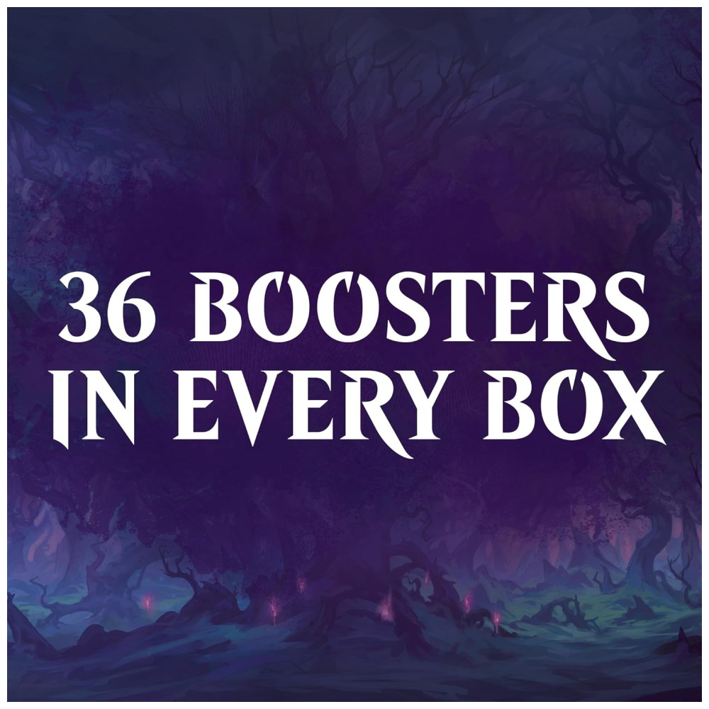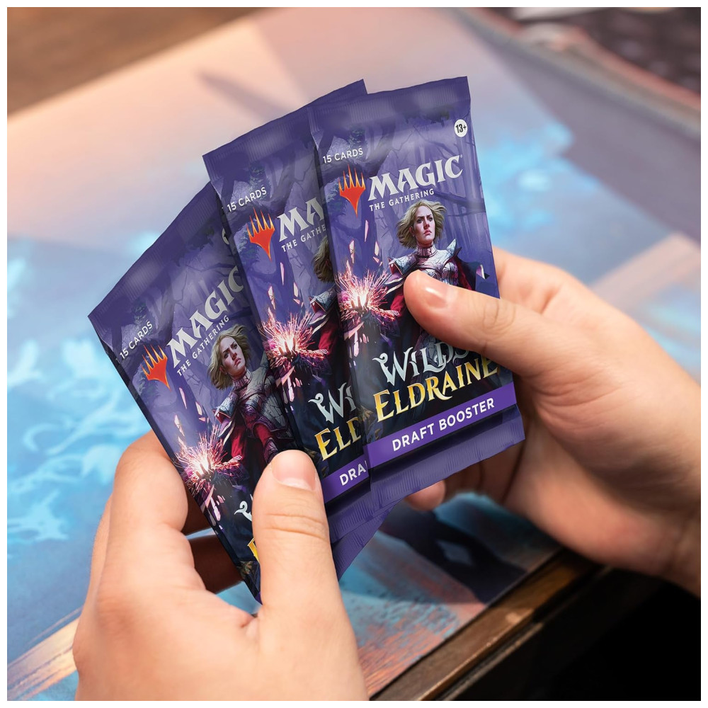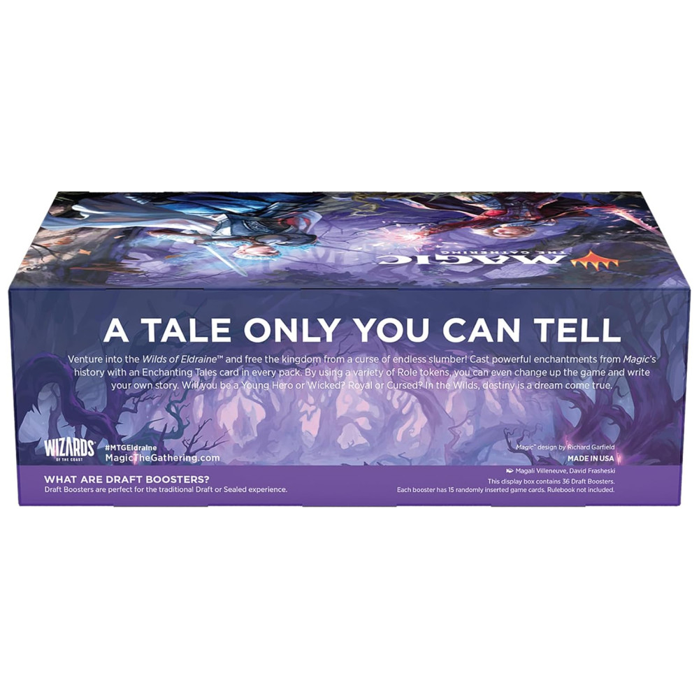 A caixa de reforço de draft de Wilds of Eldraine vem com 36 Wilds of Eldraine Draft Boosters, com 15 cartas MTG em cada pacote. Aproveite