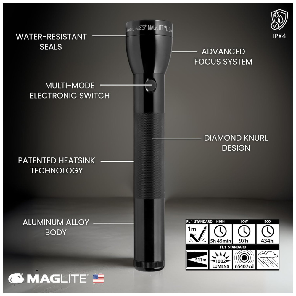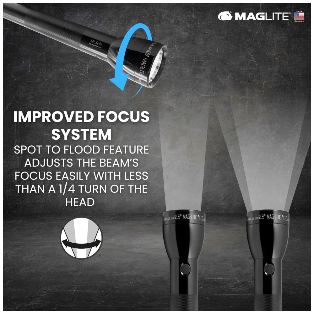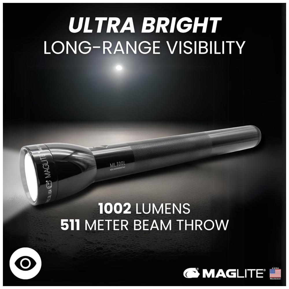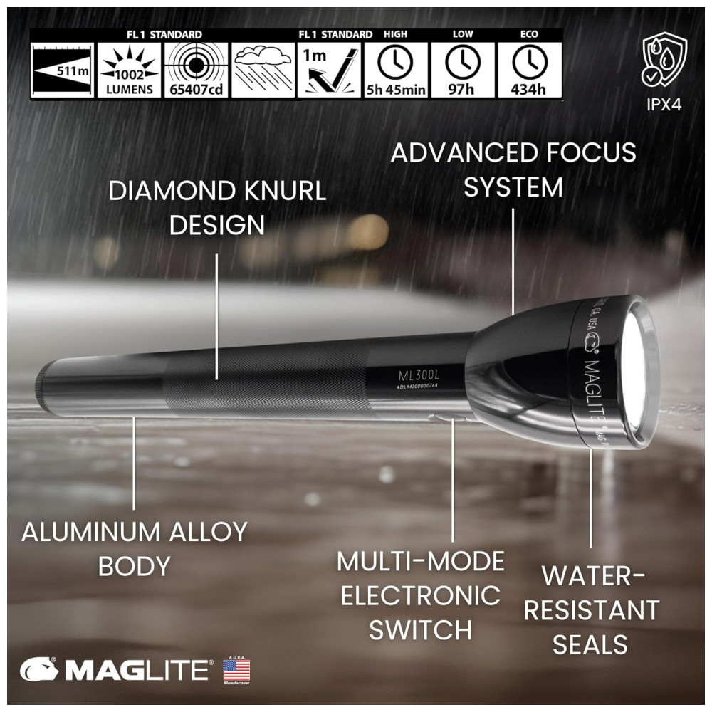 MagLite ML300L 4D Lanterna LED de 1002 Lumens Alta Durabilidade Feixe Ajustável Resistente à Água Corpo de Alumínio Preto