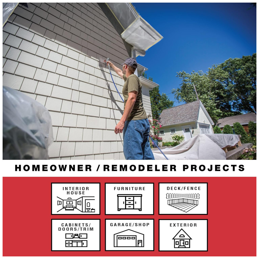 IDEAL PARA CASAS DE MÚLTIPLOS ANDARES Pode suportar até 30 metros de mangueira de tinta, permitindo que você pulverize casas de segundo e terceiro andar