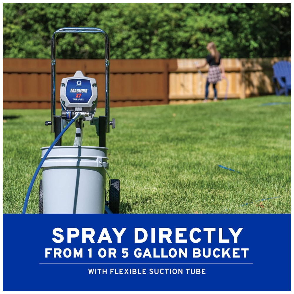 PULVERIZAR DIRETAMENTE DA BALDE DE PINTURA O tubo de sucção flexível permite que você pulverize diretamente de um balde de tinta de 3 L ou 18 L.
