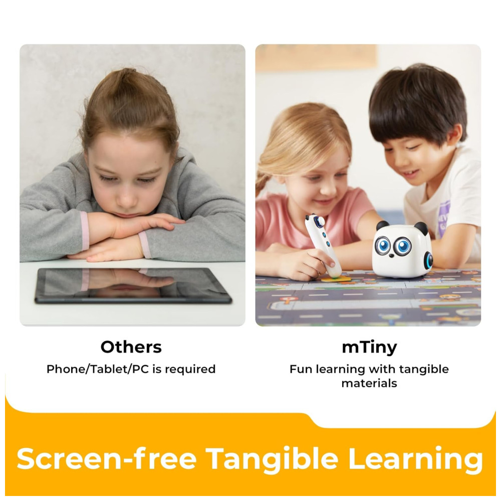 Diversão sem tela mTiny apresenta codificação totalmente sem tela não é necessário telefone ou tablet. Ele permite que as crianças envolvam diferentes sentidos para aumentar a atenção e explorar o mundo ao seu redor.