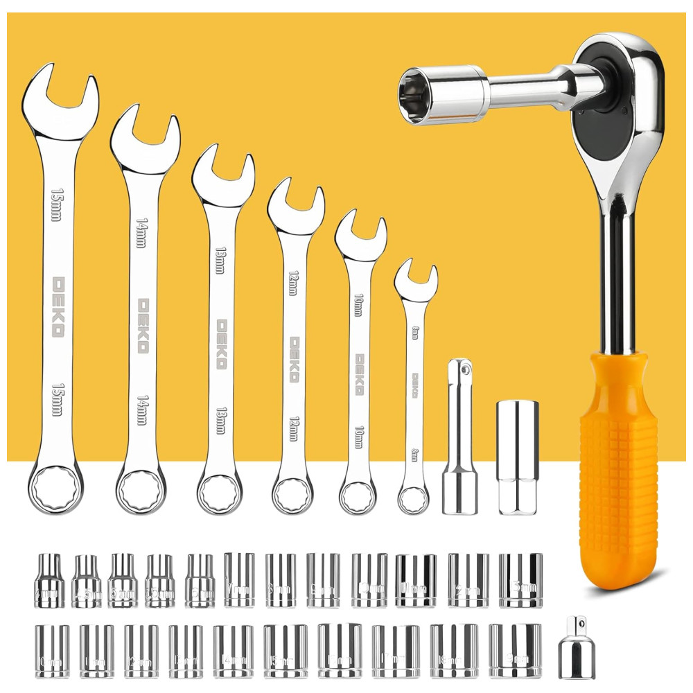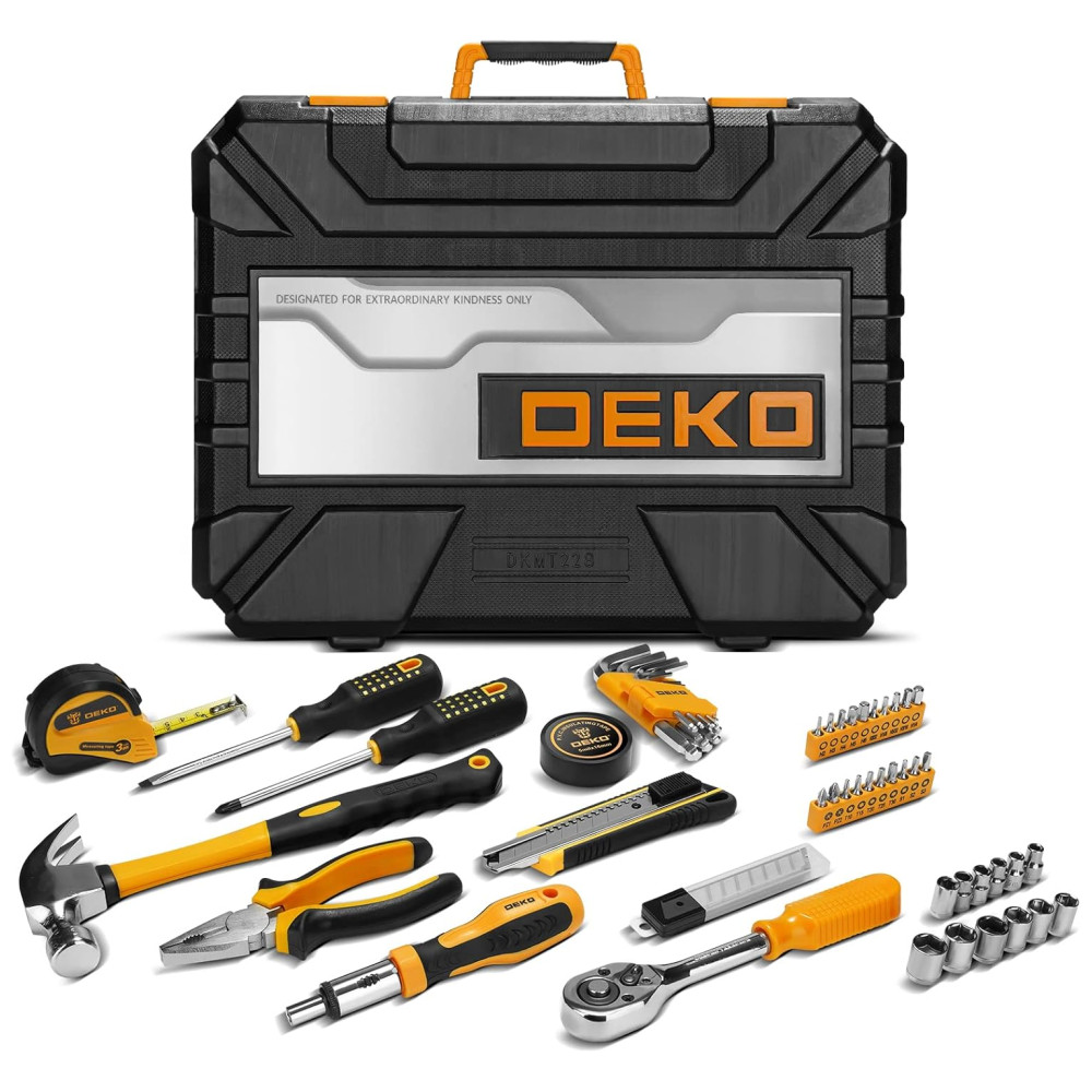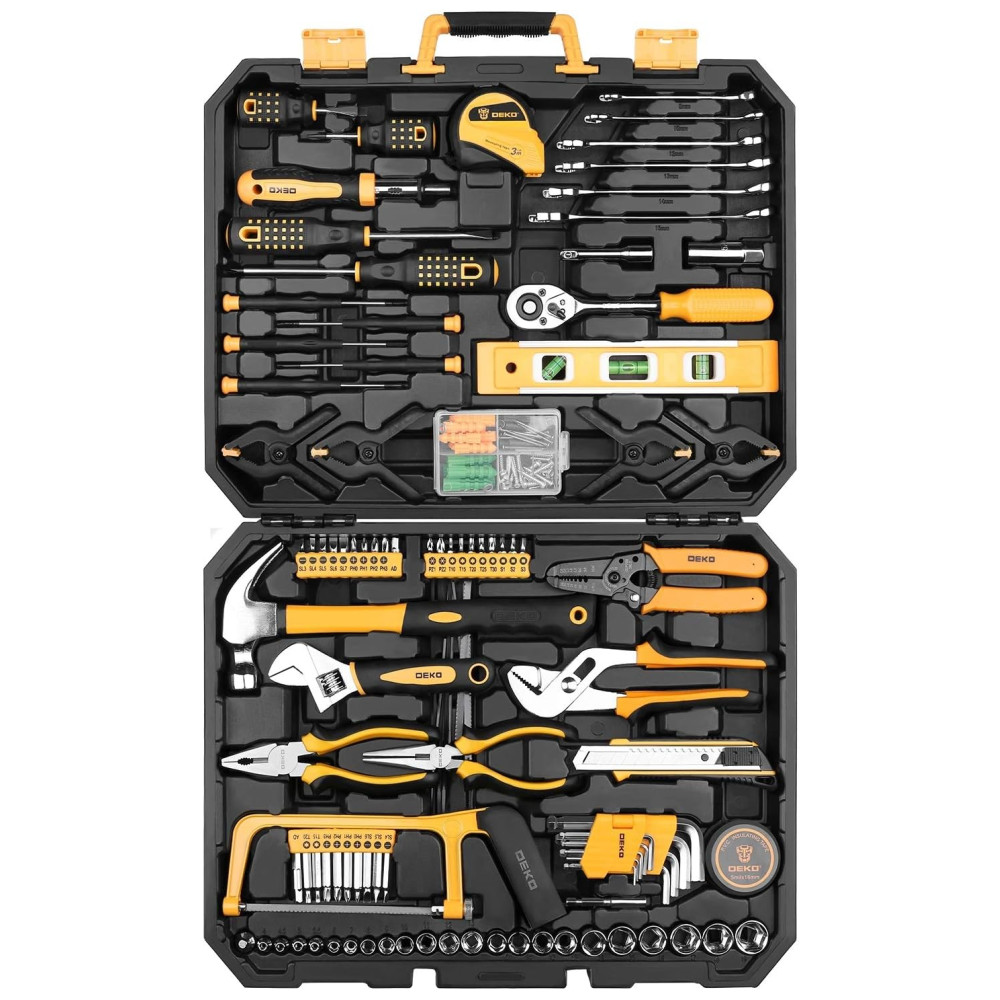 Conjunto inclui 9 Chaves de chave sextavada MM 1,5, 2, 2,5, 3, 4, 5, 6, 8, 10 12 soquetes de acionamento de 6 pontos de 1, 4 pol. MM 4, 4,5, 5, 5,5 6, 7, 8, 9,10, 11, 12, 13 10 soquetes de acionamento de 6 pontos de 3, 8 pol. MM 10, 11, 12, 13, 14, 15, 16, 17, 18, 19 5 Bit de chave de fenda de 1, 4 de polegada Bit MM 3, 4, 5, 6, 7 4 Bit de chave de fenda de 1, 4 pol. Bit Phillips 0, 1, 2, 3 5 1 , Chave de fenda Star de 4 polegadas Bit T10, T15, T20, T25, 0 2 Chave de fenda de 1, 4 pol. Pozi Bit PZ1, PZ2 3 Chave de fenda de 1, 4 pol. Bits quadrados S1, S2, S3 4 1, 4 inch 50 milímetros chave de fenda Phillips Bit 0, 1, 2, 3 3 1, 4 inch 50 milímetros chave de fenda com fenda Bit MM 4, 5, 6 2 1, 4 inch 50mm Chave de fenda Star Drive Bit T15, T20 1 1, 4 inch hex por adaptador de soquete de drive de 1, 4 pol. 1 Alicate de nariz longo de 6,5 pol. 1 Alicate deslizante de 6 polegadas 1 8 Diagonais de corte Alicate de corte 1 Chave ajustável de 7 polegadas 1 Martelo de corte de 11 polegadas 1 Faca de serviço público de 6 polegadas 1 Serra de 10 polegadas 1 Regra de fita com medida de 10 pés 4 Mola de nylon braçadeiras 1 Kit de Varetas de Parafuso de Madeira 6 Combinação W rench MM 8,10,12,13,14,15 1 Unidade de 3, 8 polegadas por catraca de liberação rápida polida de 8 polegadas, cabeça oval de 72 dentes 3 Chave de fenda de precisão com fenda MM 1.0, 2.0, 3.0 2 Chave de fenda de precisão Phillips 1, 2 2 Conjunto de chave de fenda stubby Slotted Phillips Dica magnetizada 1, 4 , lâmina 1 1, 2 L alça 2 1, 2 L 2 Conjunto de chave de fenda Slotted Phillips Ponta magnetizada 1, 4 , lâmina 4 L alça 4 1, 4 L 1 Fita isolante de PVC 16 pés 1 soquete profundo de 5, 8 pol. mais 1 decapador , cortador de fio de 6,5 pol. Para corte de fio trançado de 10 a 22 AWG 1 Nível de torpedo 1 Adaptador de soquete 1 Bit Suporte com comutação solta e apertada OBSERVAÇÃO Ao abrir a caixa de ferramentas, coloque o logo DEKO sobre ele