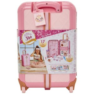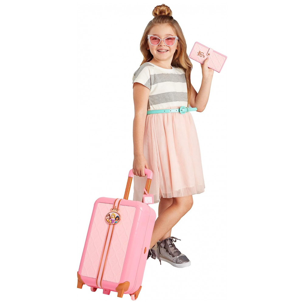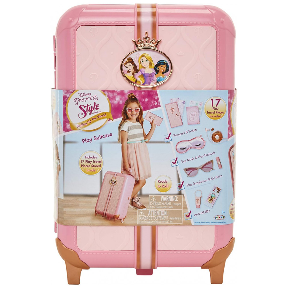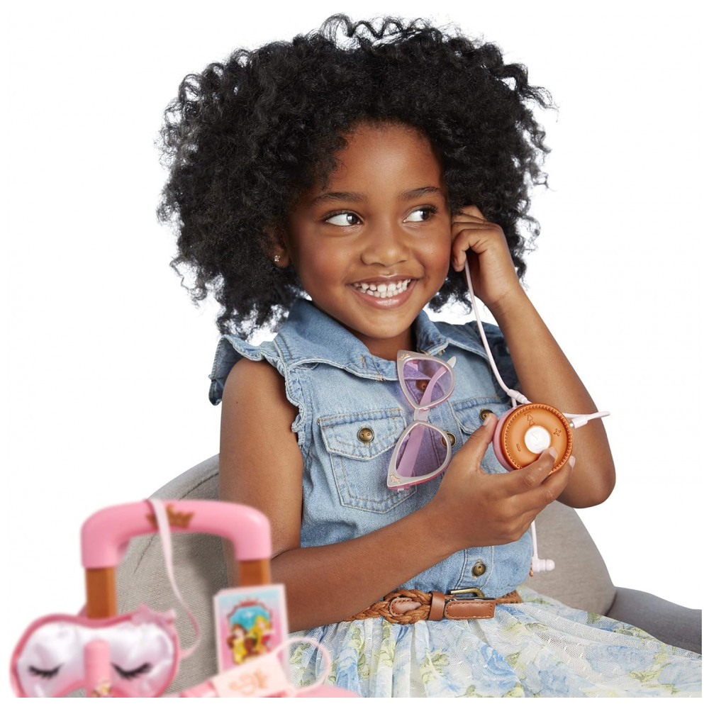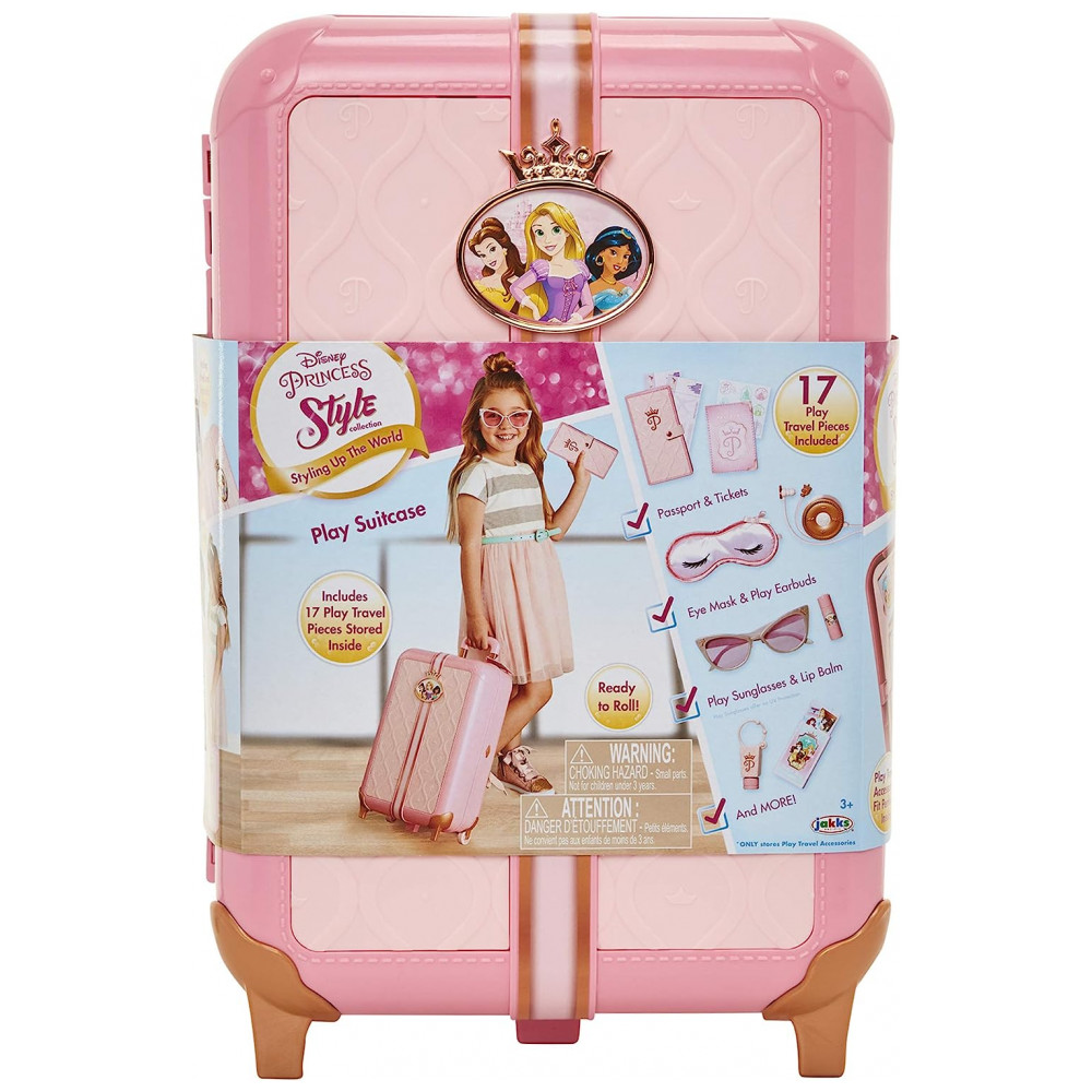 Elegante, única e muito divertida, a coleção estilo Disney Princesa combina brincadeiras cotidianas com um toque contemporâneo de Princesa Disney. Esta coleção de brinquedos inspirados na vida real é destinada à garota moderna com grandes objetivos e grande estilo. Ela é uma empreendedora, uma viajante do mundo, uma fashionista e, acima de tudo, uma garota que define suas próprias tendências Prepare se para enfrentar o mundo com a coleção estilo Disney Princess A maleta de brincar da coleção estilo Princesas da Disney tem tudo que uma princesa precisa para viajar com estilo Todos os itens essenciais da sua viagem estão cobertos e perfeitamente guardados na mala de brincar tão chique. Relaxe no aeroporto com fones de ouvido e máscara para os olhos, ou refresque se antes da decolagem com protetor labial e desinfetante para as mãos. As rodas de trabalho reais e a alça retrátil garantem que você sempre pegue seu voo Com passaporte e passagem em sua carteira, você está pronto para embarcar em aventuras em lugares distantes Compatível com a bolsa de acessórios de viagem vendida separadamente. sugerido para maiores de 3 anos.