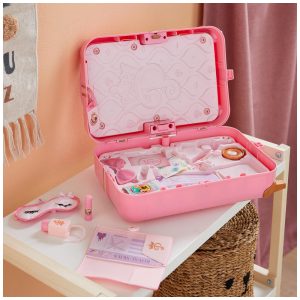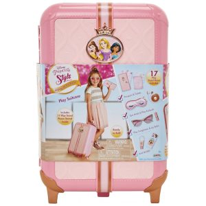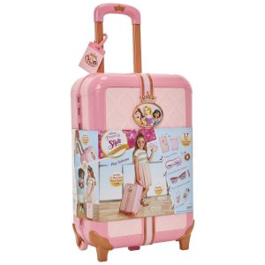 Mala de Viagem de Brinquedo com Etiqueta de Bagagem e 17 Acessórios Disney Princesas Rosa