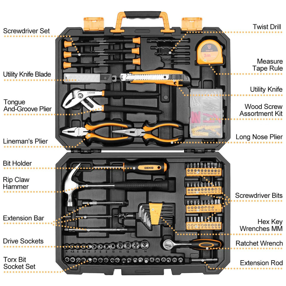 ADAPTABILIDADE Kit de caixa de ferramentas multifuncional e amplo, perfeito para projetos domésticos de DIY, incluindo montagem de móveis, carpintaria, manutenção diária e muito mais