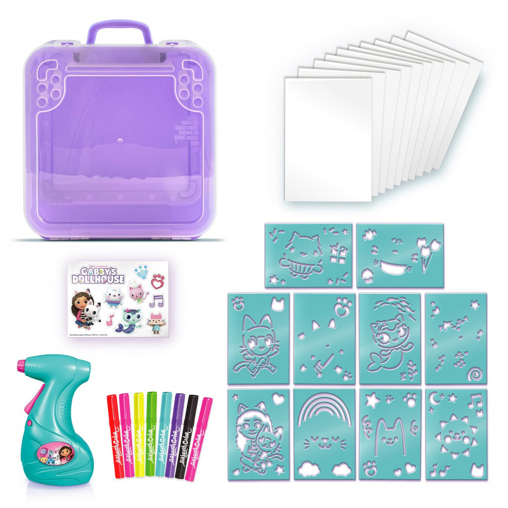 Maleta de Arte Gabbys Dollhouse Airbrush! Crie Pôsteres Incríveis com Estênceis e Airbrush! Canal Toys