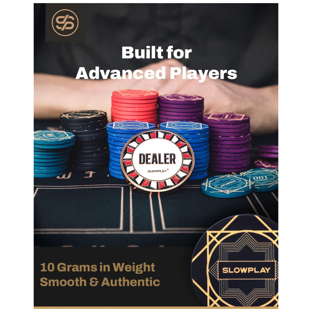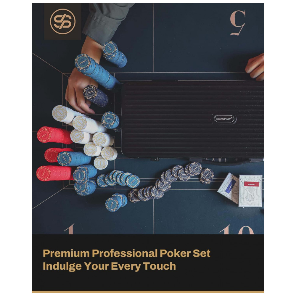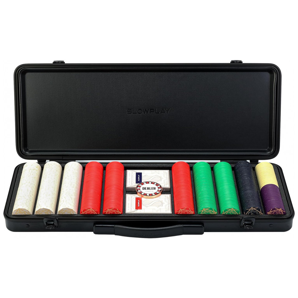 Maleta de Poker 500 Peças com Fichas Numeradas em Cerâmica e Revestimento Alemão de Alta Qualidade SLOWPLAY Preta