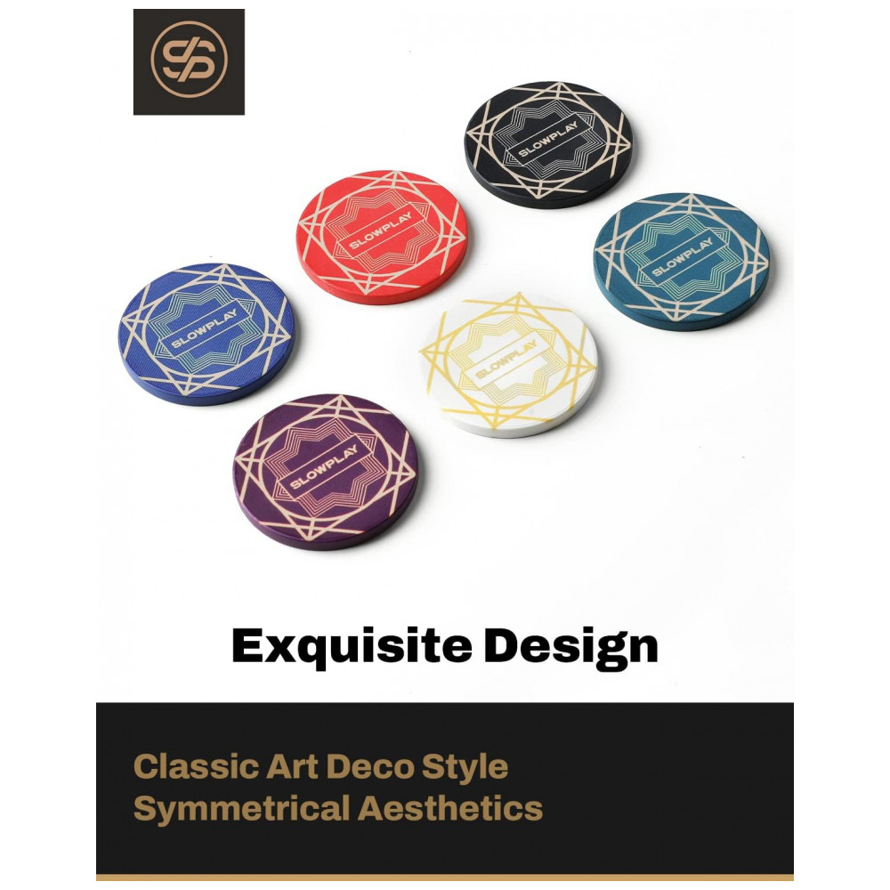 Batatas fritas artesanato requintado, jogo grátis 10 gramas de peso. O design do padrão de chip é inspirado no estilo artístico Art Deco do início do século XX. As linhas simplificadas e a composição geométrica simples combinam perfeitamente a grandeza da década de 1920 e a simplicidade contemporânea para elevar a experiência do pôquer a um nível.