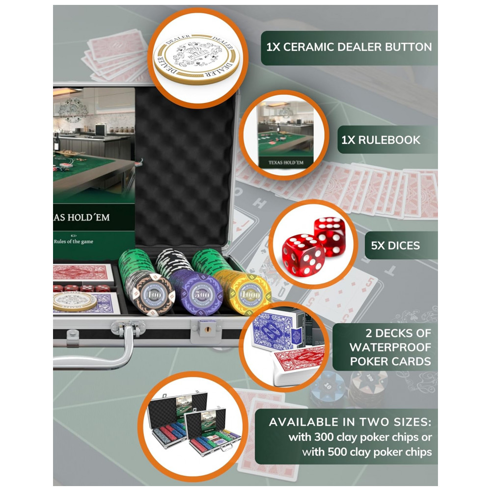 Incluindo 300 fichas de Designer Clay Poker, peso de um chip aprox. 12 g