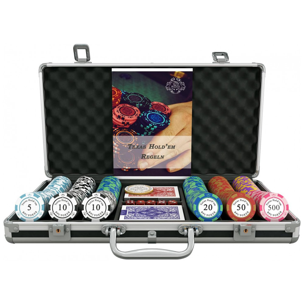 Maleta de Poker com 300 Fichas Numeradas Manual de Regas e Cartas Idade Recomendada 12 Anos ou Mais Bullets