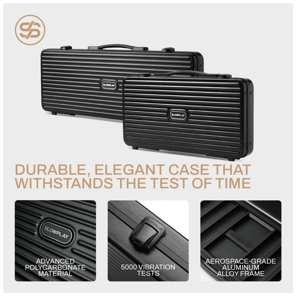 Estojo de transporte de chips estamos redefinindo como deve ser um bom caso. A carcaça externa é feita de material de policarbonato alemão Bayer, fabricado com moldagem por injeção de uma peça, tornando o extremamente durável. Também inclui uma estrutura de liga de alumínio personalizada, trava de liga de zinco e alça grande. Os chips feitos à mão apresentam suporte interno e materiais de embalagem de couro PU. Super portátil com material preto de corpo inteiro.