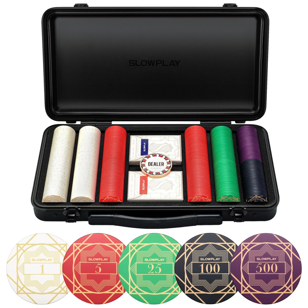 Maleta de Poker de Alta Qualidade com 300 Peças e Fichas Numeradas 12g SLOWPLAY Preta