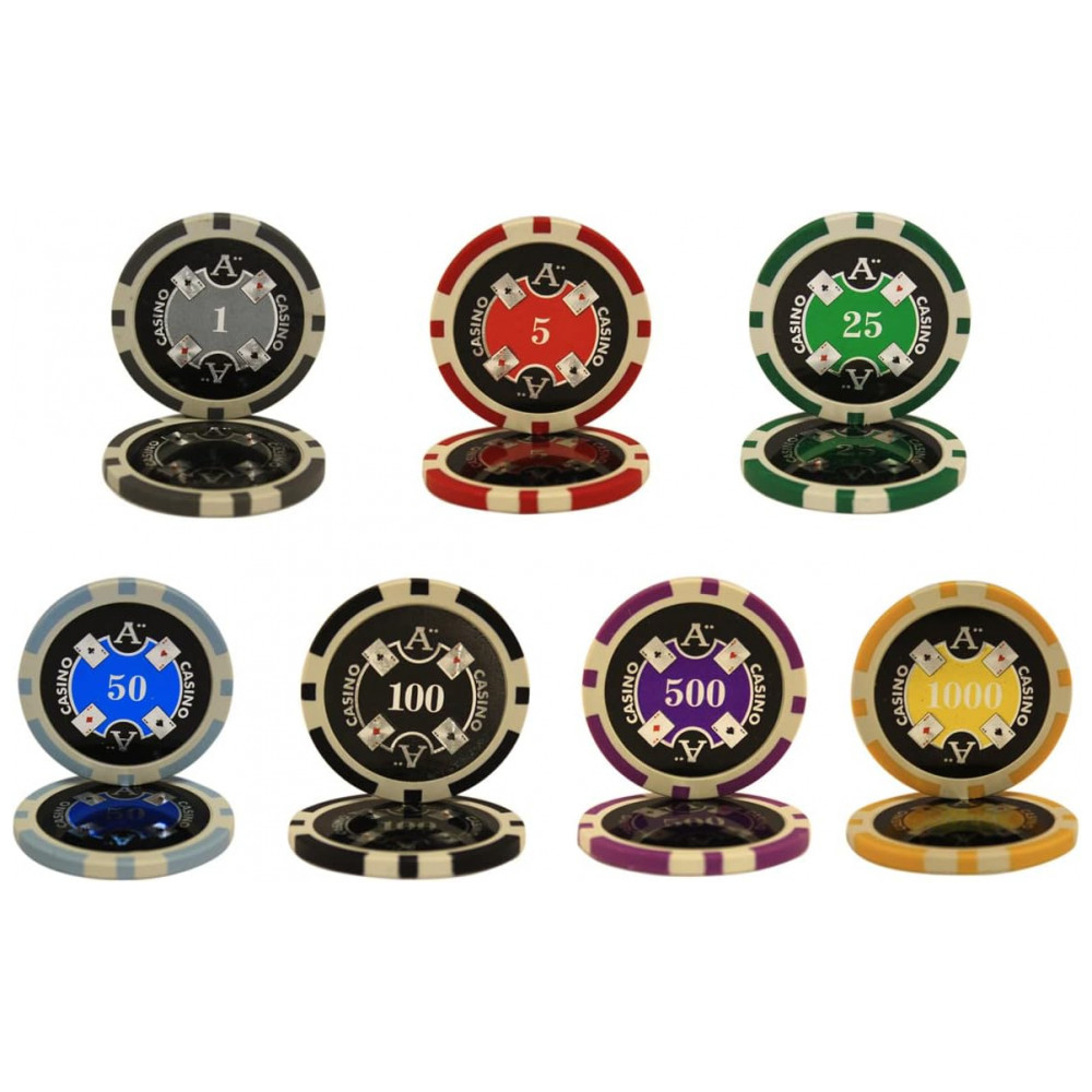 500 fichas numeradas 150pcs 1 100pcs 5 100pcs 25 50pcs 50 50pcs 100 25pcs 500