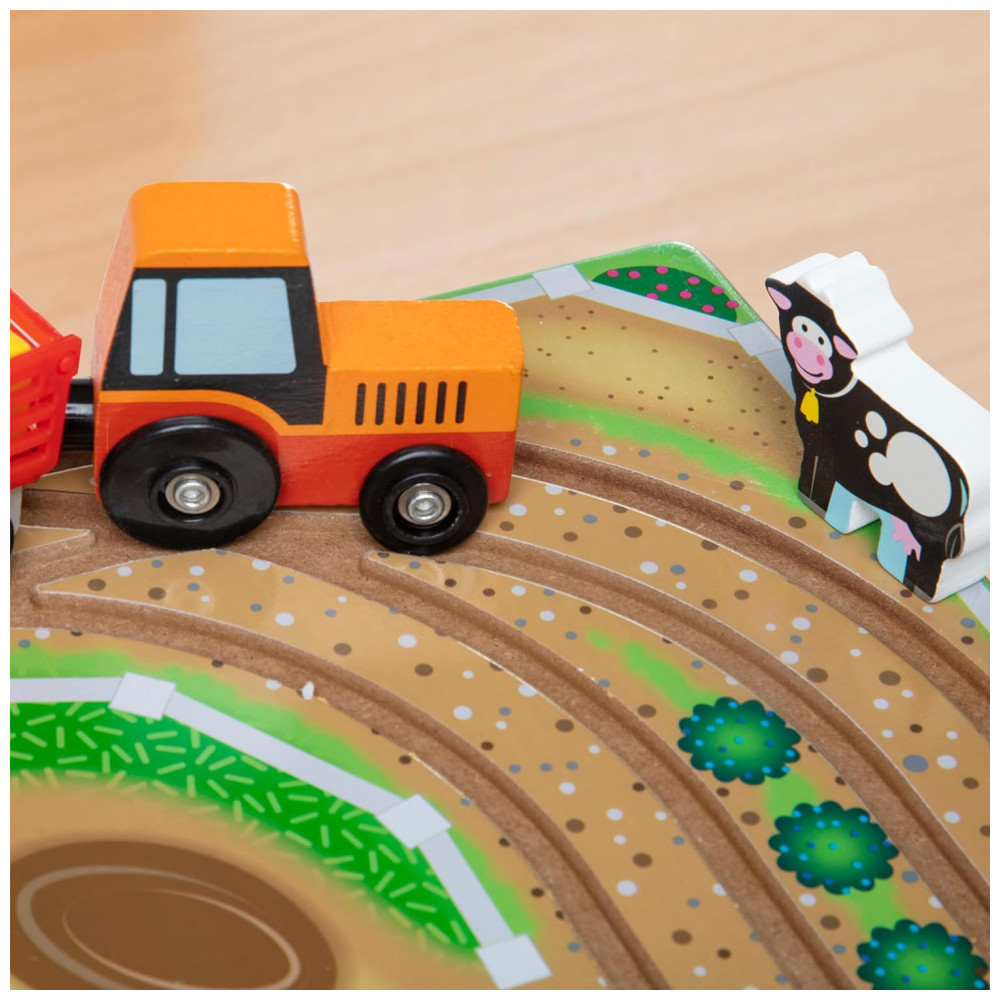 Deixe a imaginação das crianças correr solta com o conjunto de brinquedos de madeira Fazenda Melissa Doug TakeAlong, que inclui trilhas integradas, cenários coloridos e peças divertidas. O conjunto conta com um caminhão, trator, 2 reboques com acopladores magnéticos, ponte, celeiro com silo, casa de grãos, árvores, animais e fardos de feno, permitindo que as crianças montem uma fazenda completa. Todas as peças podem ser armazenadas em um estojo dobrável com alça de transporte conveniente para fácil limpeza e transporte.