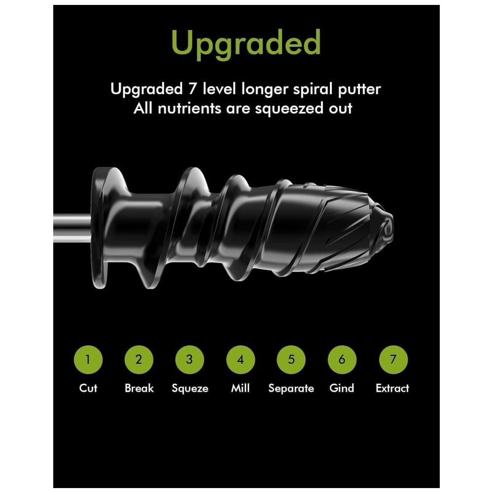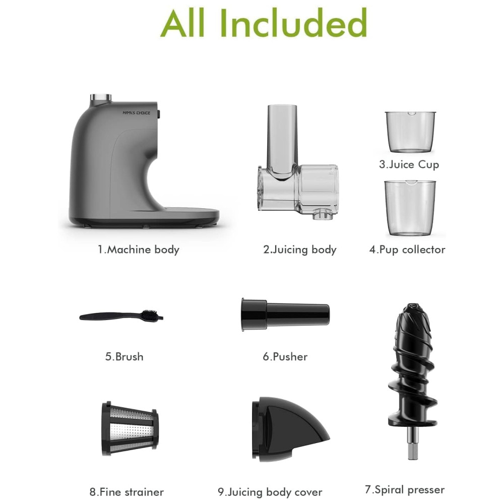 Maior e mais pura produção de suco e nutrição mais rica O espremedor de sucos MAMACHOICE adota motor de baixa velocidade e moagem fina, que pode reter melhor o valor nutricional de frutas e vegetais. Separa perfeitamente o suco da polpa e extrai mais suco, vitaminas e minerais, reduzindo o índice de oxidação. Use o para fazer uma variedade de alimentos saudáveis para sua família e desfrute facilmente de diferentes sabores de suco todos os dias.