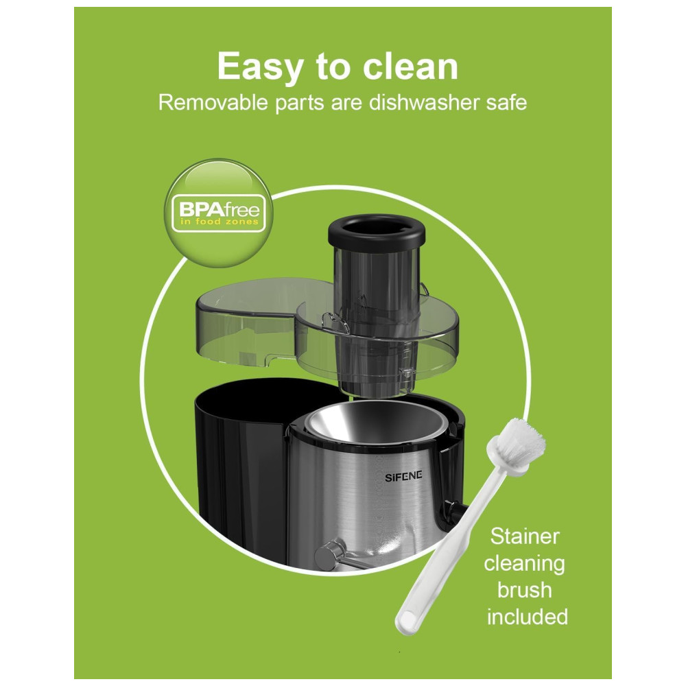 QUALIDADE DE VIDA PARCEIRO MAMAS CHOICE espremedor centrífugo de MAMAS CHOICE, adota lâminas afiadas de aço inoxidável 304 de grau alimentar resistente à corrosão e filtro de precisão, podemos obter o suco puro e saudável em segundos, extrair vitaminas e minerais com eficiência, menos entupimento e menos espuma .