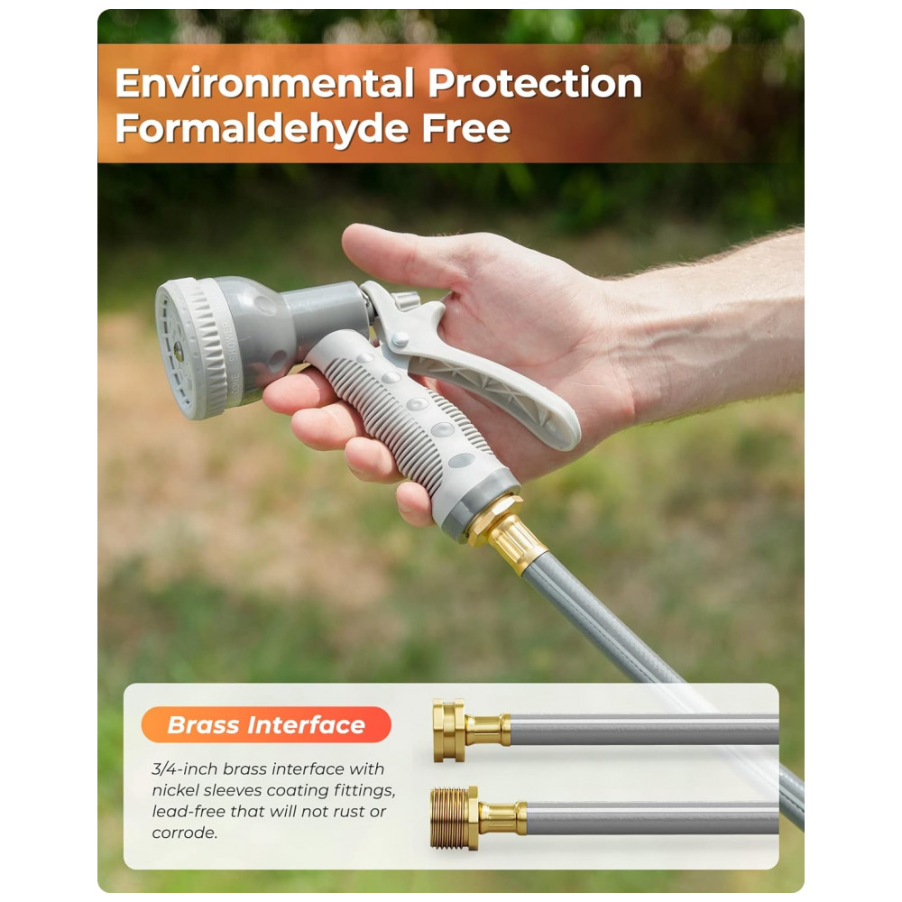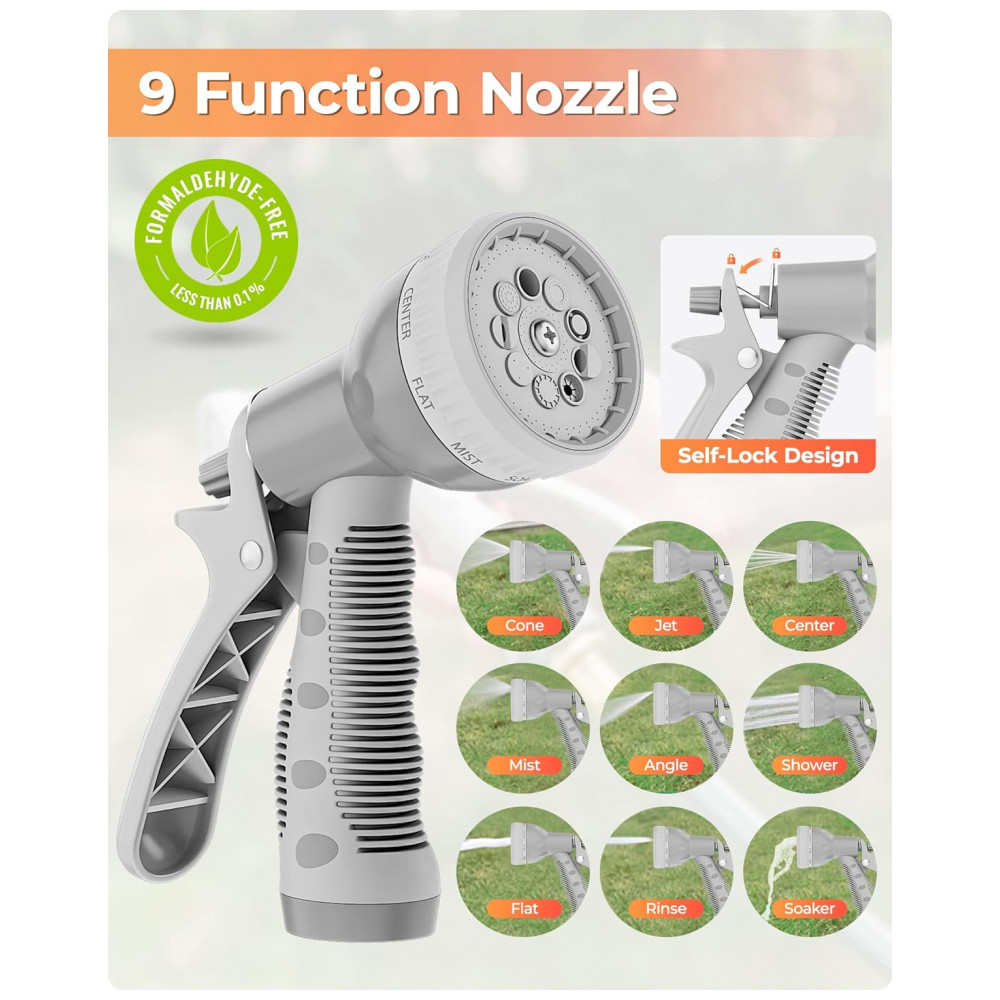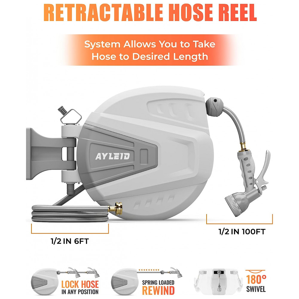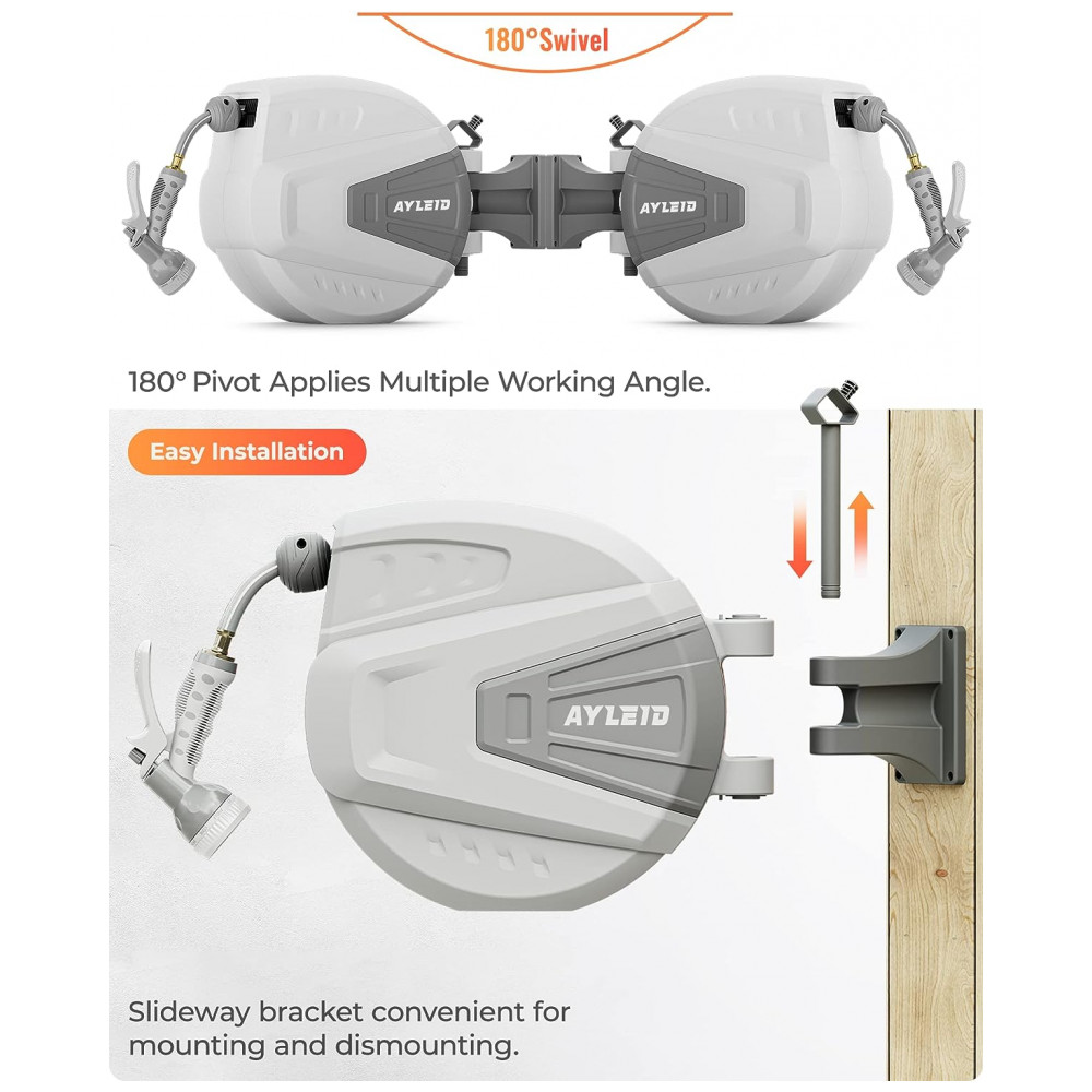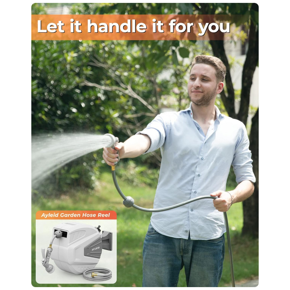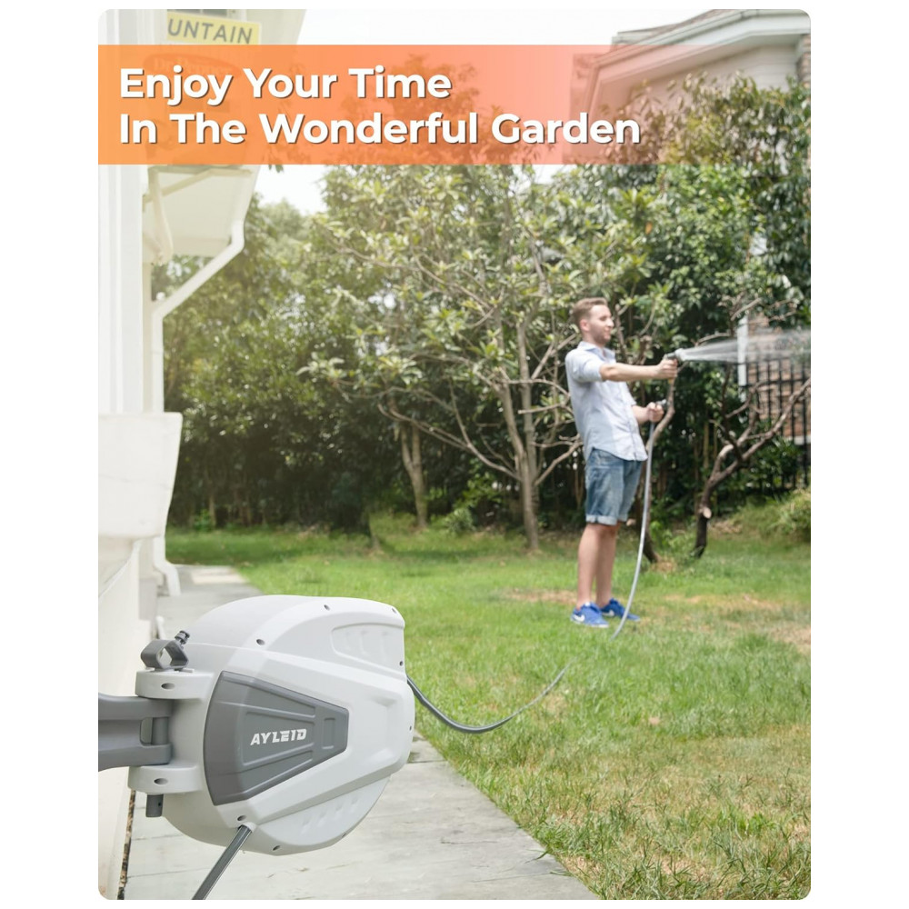 Mangueira de Jadim 30M com Enrolador Retrátil Bico Pulverizador de 9 Funções Trava de Qualquer Comprimento e Sistema de Retorno Lento Ayleid Cinza