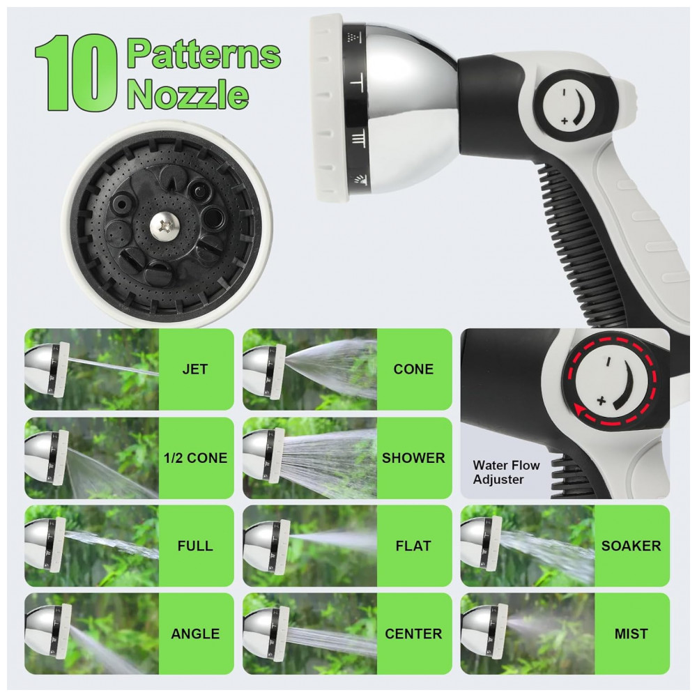 Cubra um espaço grande: A mangueira de 40 metros e o suporte de pivô de 180 graus tornam no capaz de envolver um grande espaço e todos os pontos do seu jardim podem ser cobertos. Sem ter que mudar as torneiras proporciona um enorme conforto para regar facilmente um jardim de uma grande área.