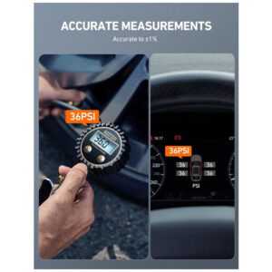 PRECISÃO AVANÇADA: Profissionalmente calibrado para sempre fornecer uma leitura precisa dentro de 1 da pressão exata do seu pneu. Mede com precisão QUATRO UNIDADES DIFERENTES em uma faixa de 3250 PSI 0,217,2 Bar 0,211724 Kpa 0,217,5 kg/cm2. Recursos TUDO-EM-UM: A tela retroiluminada LED apresenta medidas em PSI, KPA, Bar e Kg/cm2. Inclui um inflador, bico de ar reto, manômetro, mangueira, válvula de sangria, tudo em um único dispositivo, ideal para carros, bicicletas, motocicletas, balões, almofadas de ar, bolas esportivas, entre outros. Compatível com saída de compressores de ar NPT. SEGURANÇA AUMENTADA: Pneus devidamente calibrados oferecem melhor desempenho em todas as condições climáticas, reduzindo a probabilidade de furos, explosões e acidentes. Aumente sua economia de combustível e economize dinheiro com custos de combustível e desgaste dos pneus. CONSTRUÇÃO SUPERIOR: Construído com componentes de aço inoxidável e latão de alta qualidade que proporcionam um desempenho duradouro. Utilize em todos os veículos, como carros, SUVs, caminhões, motocicletas, bicicletas com válvula Schrader, trailers e muito mais! ECONOMIA DE BATERIA E MAIS: Liga automaticamente e desliga após 20 segundos de inatividade para preservar a vida útil da bateria. Possui válvula interna de sangria de ar para diminuir rapidamente a pressão em pneus superinflados.