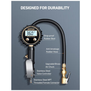 Manômetro Digital AstroAI com Inflador de Pneus – 3250 PSI 01 de Resolução de Display Bico de Ar Resistente e Acessórios para Compressor