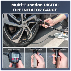 O Manômetro Digital com Inflador da ENDARK, com capacidade de 250 PSI, é um testador de ar comprimido multifuncional 3 em 1. Além de funcionar como um preciso medidor de pressão de ar para carros, também atua como enchimento de pneus e esvaziador de ar. Com a calibração de alta precisão, pode-se escolher entre quatro unidades de medição diferentes (PSI, KPA, BAR, KGCM) e é preciso até 1 umidade relativa a 25°C, com resolução de exibição de 0,1 para máxima precisão. Feito com materiais robustos como aço inoxidável, latão e mangueira de silicone espessa, este inflador de pneus garante longa durabilidade. A tela LCD digital azul brilhante facilita a leitura da pressão do ar, contribuindo para a segurança ao dirigir e economia de combustível. Acompanha diversos acessórios como tampa de válvula, adaptador de válvula Schrader para Presta, entre outros, sendo um item essencial para viagens.