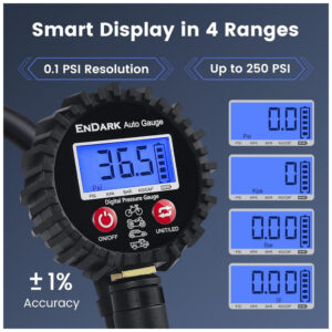 Manômetro Digital com Inflador ENDARK 250 PSI – Medidor de Pressão de Pneus a Ar Comprimido 3 em 1