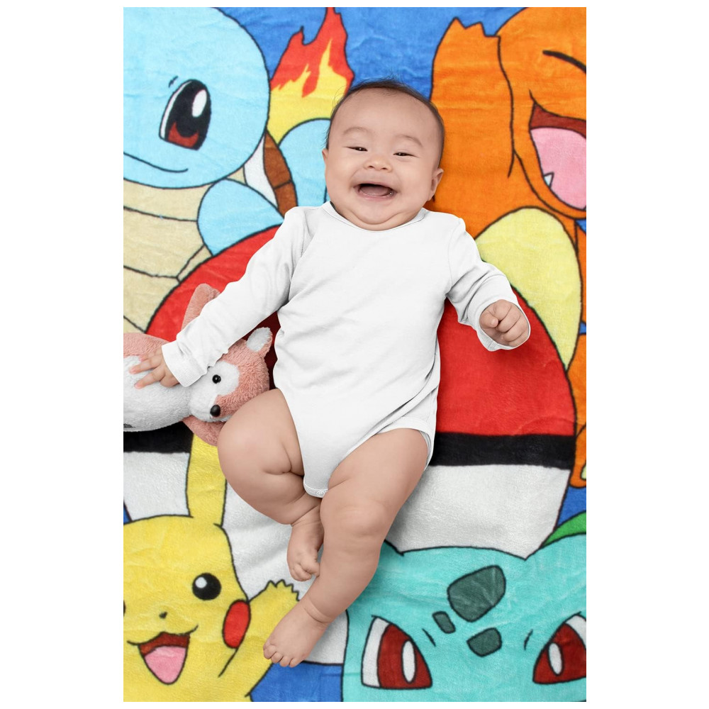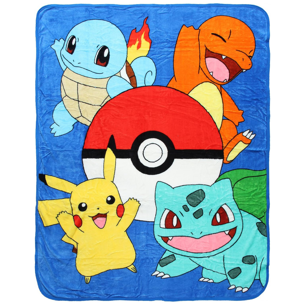 Manta microfibra Pokémon Northwest Pikachu Charmander Bulbasaur Squirtle 100% poliéster estampa colorida 122cm x 152cm
