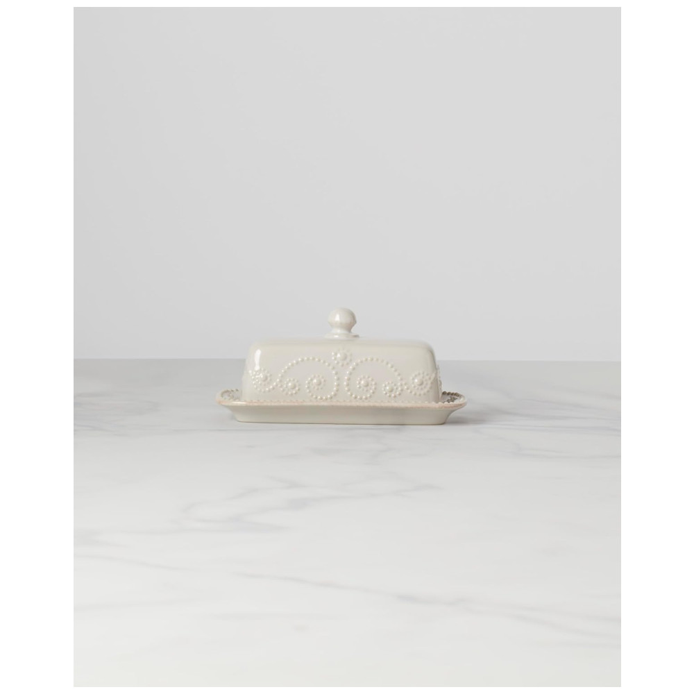 Adicione um toque de elegância à sua mesa com a Manteigueira da Coleção French Perle da Lenox. Feita de grés elegante, esta bela peça traz o charme rústico da França para um item essencial de servir.