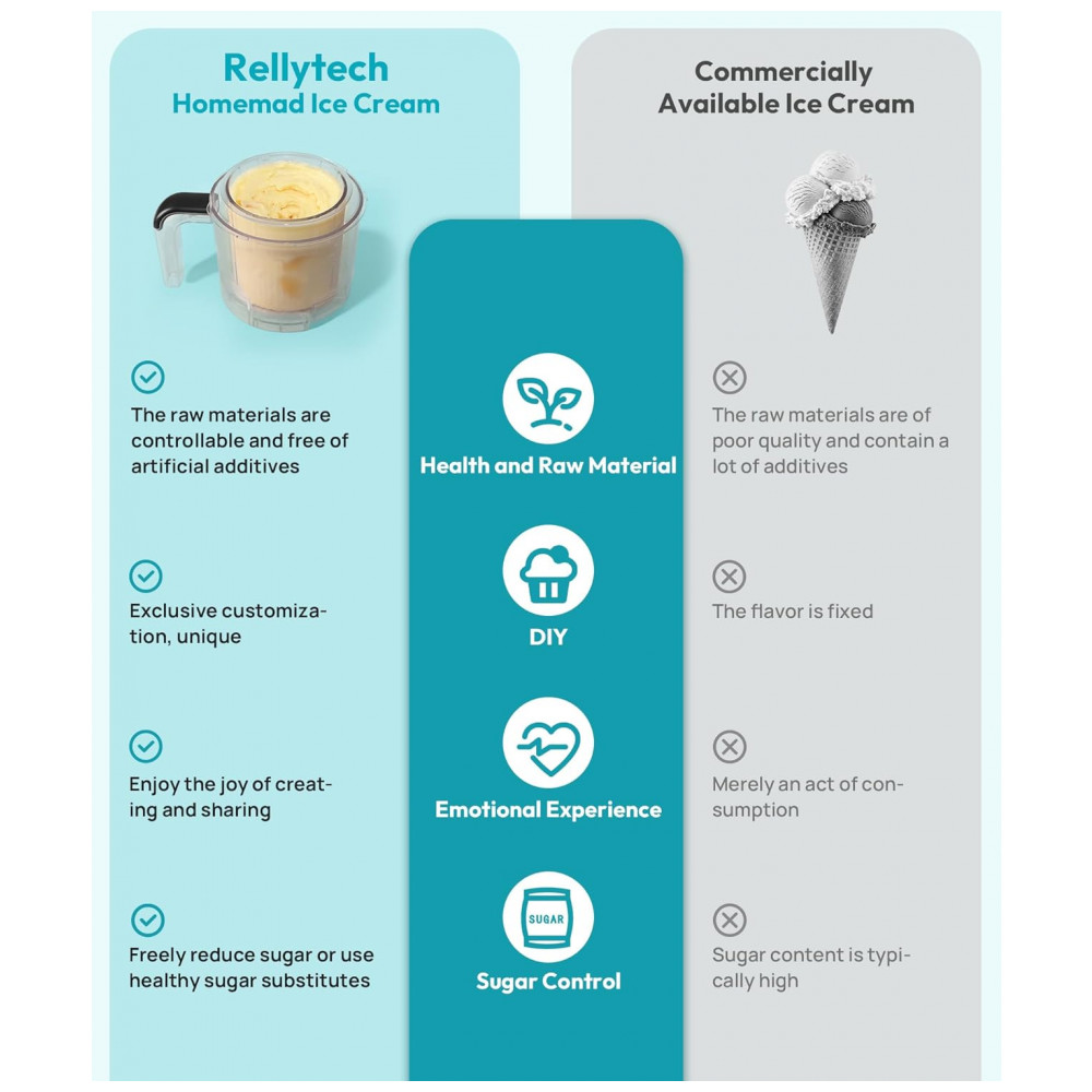 Máquina Automática de Sorvete Rellytech 12-em-1 Preto 12 Programas 2 Recipientes 473 ml Autolimpeza