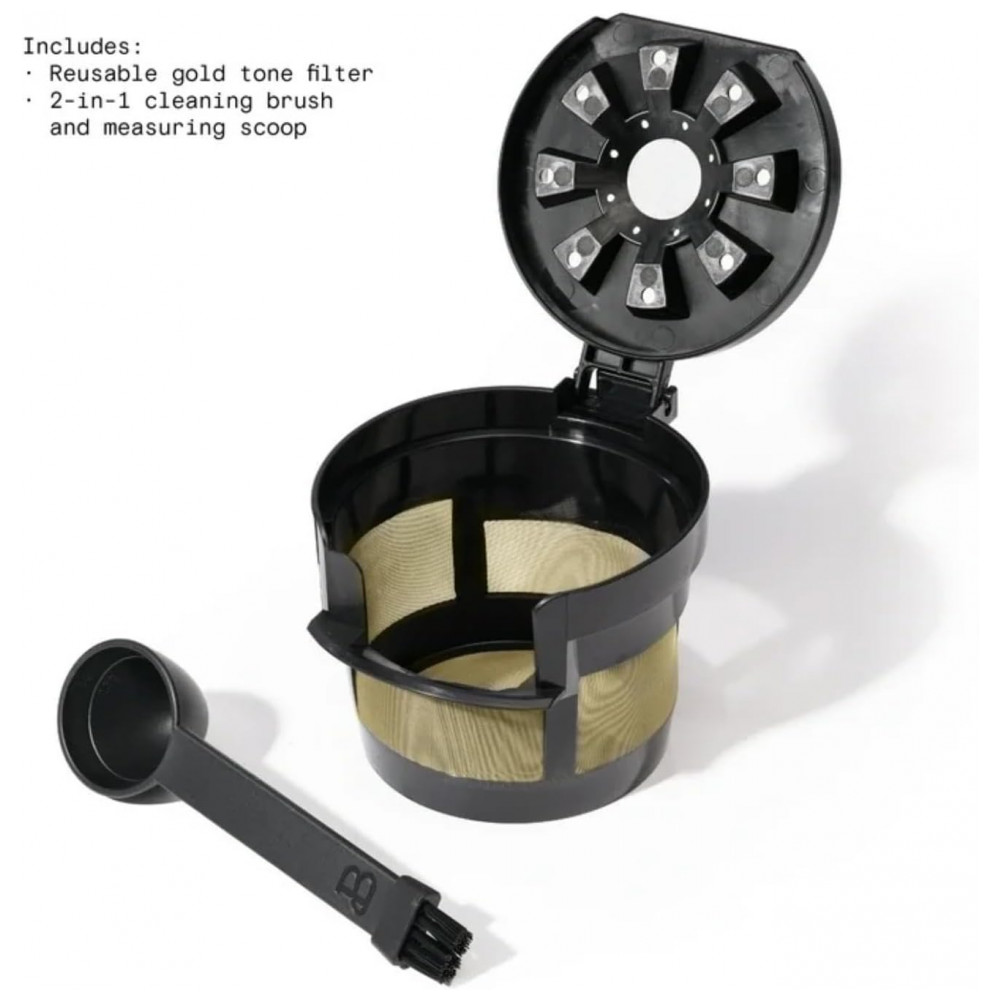 Construída em vidro, plástico e aço inoxidável com acabamento glossy, inclui filtro ouro reutilizável.