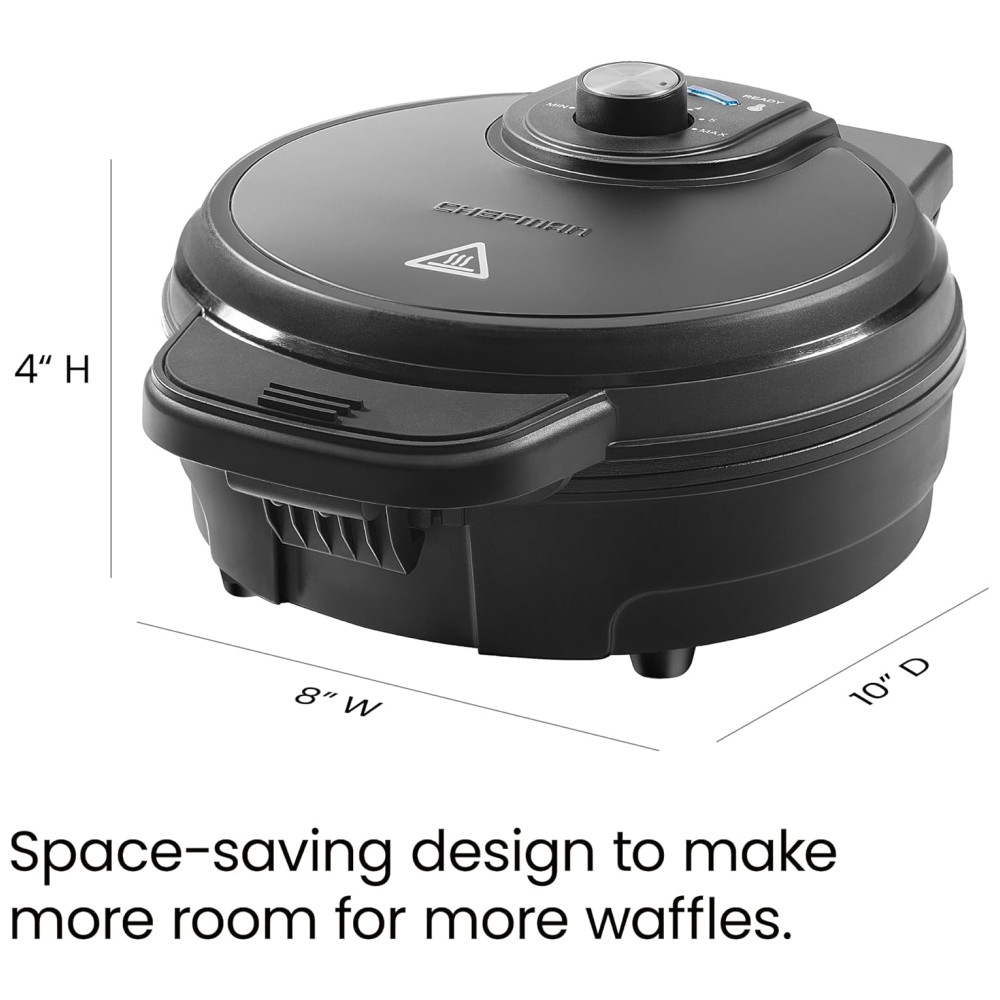 Máquina de Aço Inox 700W 110v CHEFMAN Anti Overflow Belgian Waffle Maker Preto