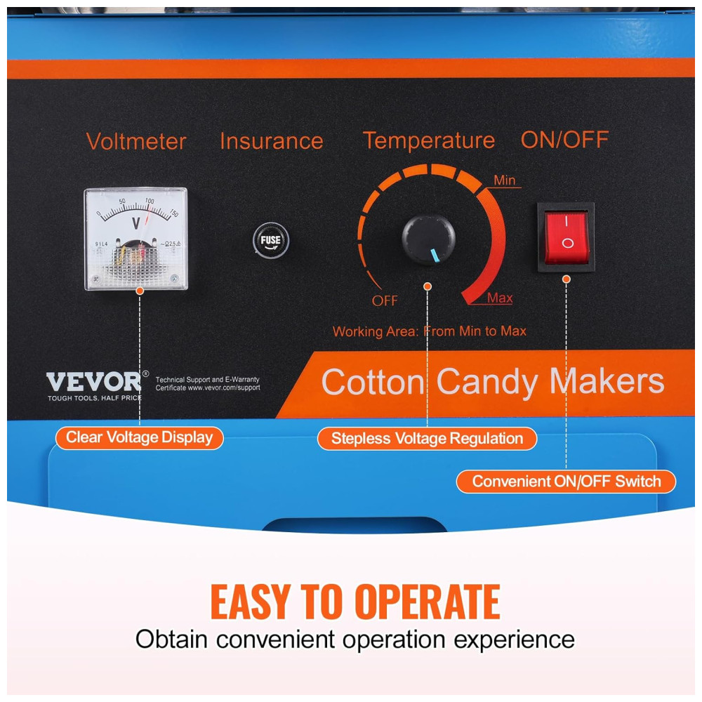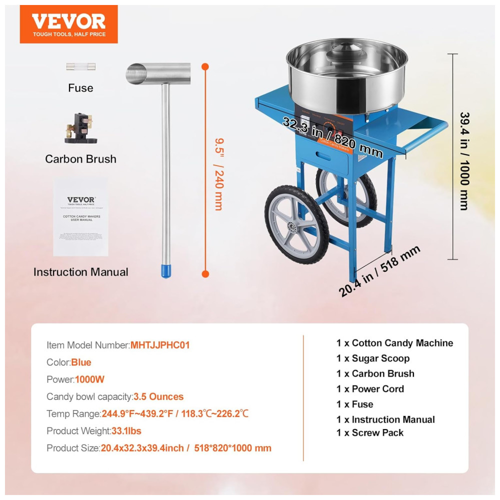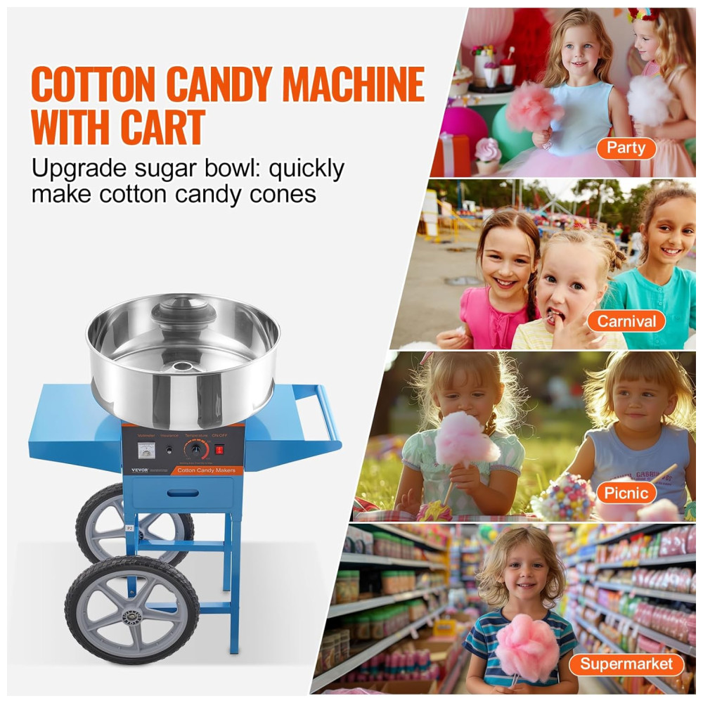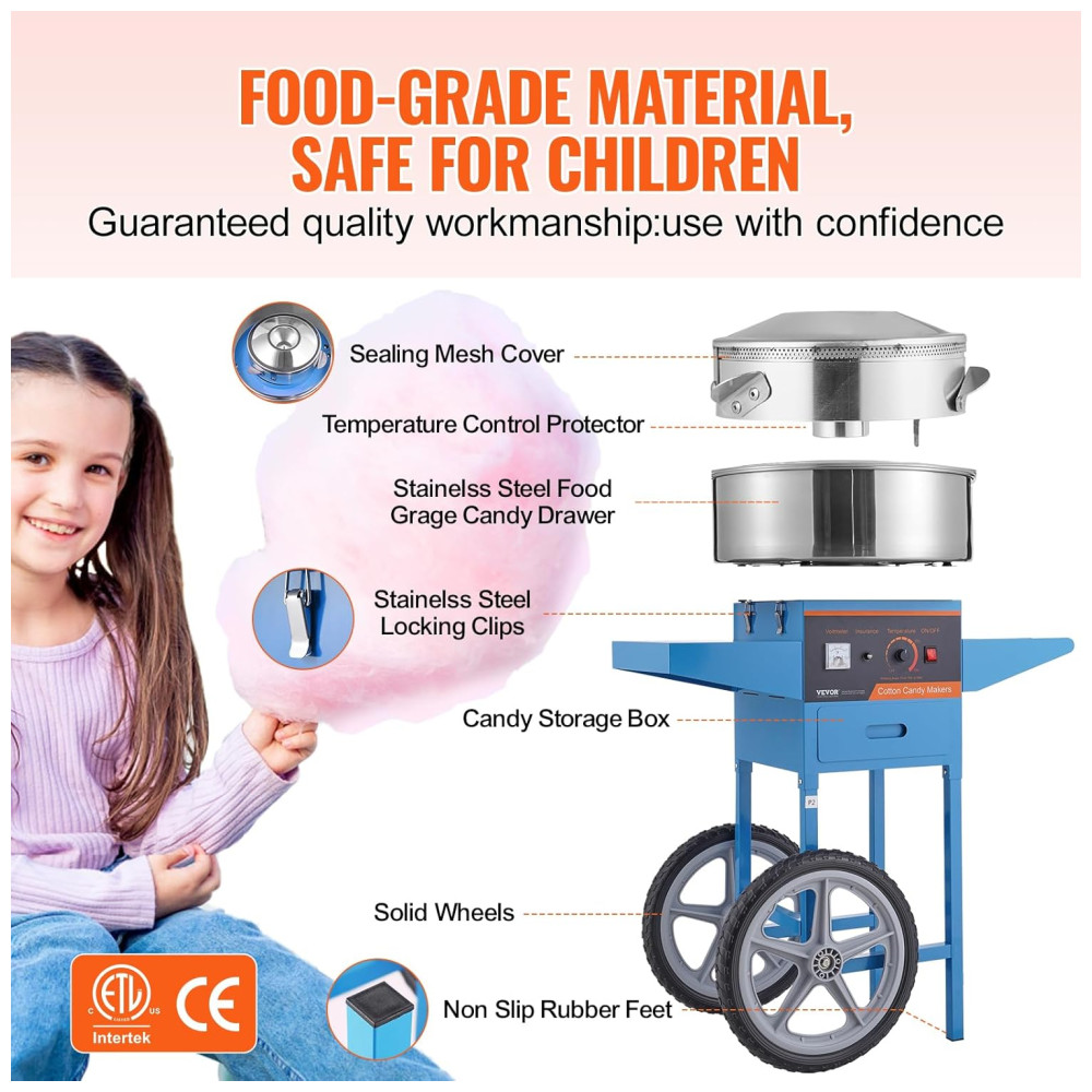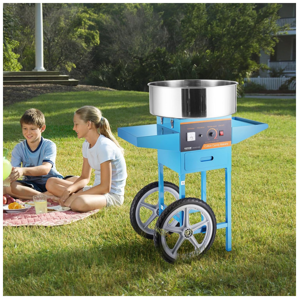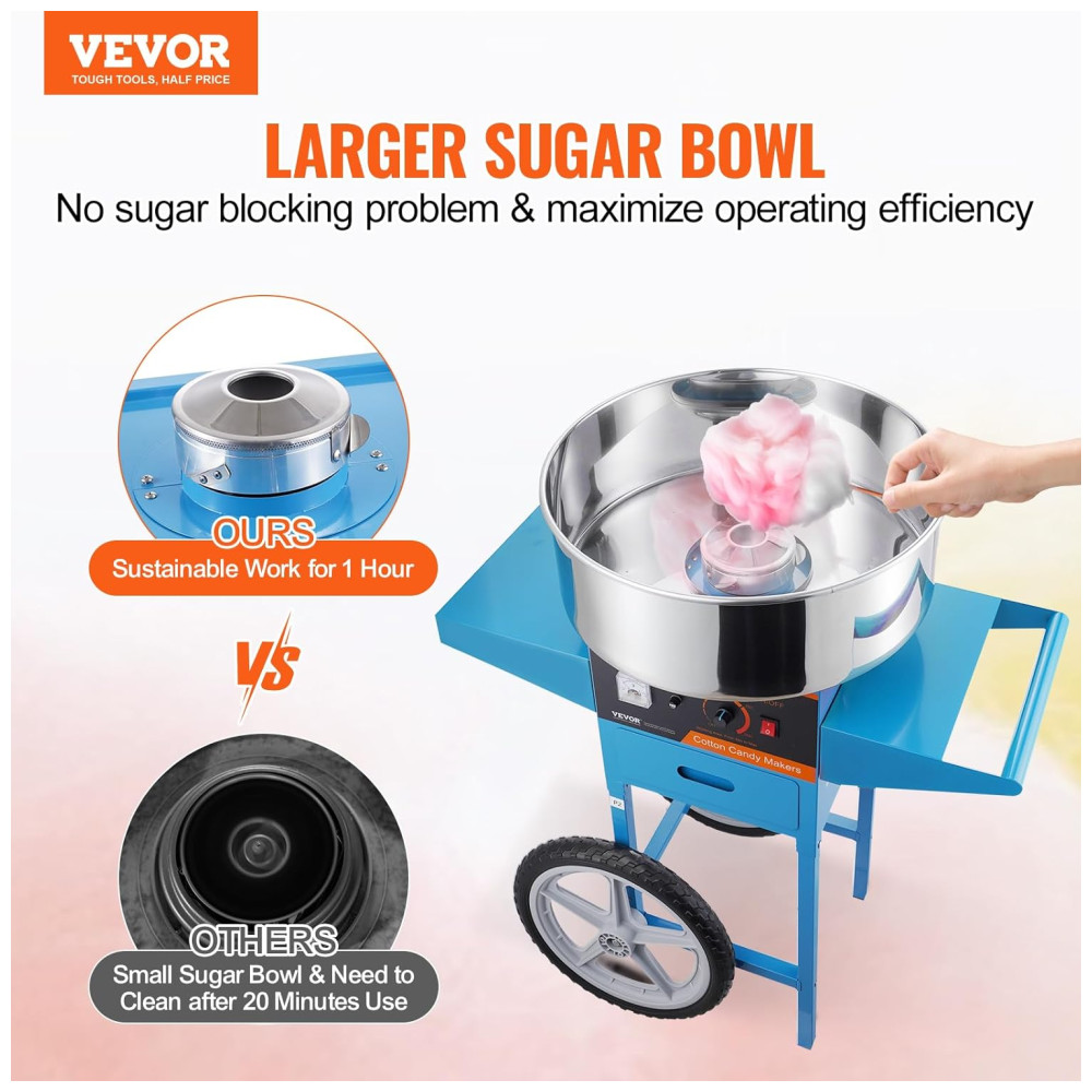 Máquina de Algodão Doce Aço Inoxidável 1030W 110v VBENLEM Cotton Candy Machine with Cart Azul