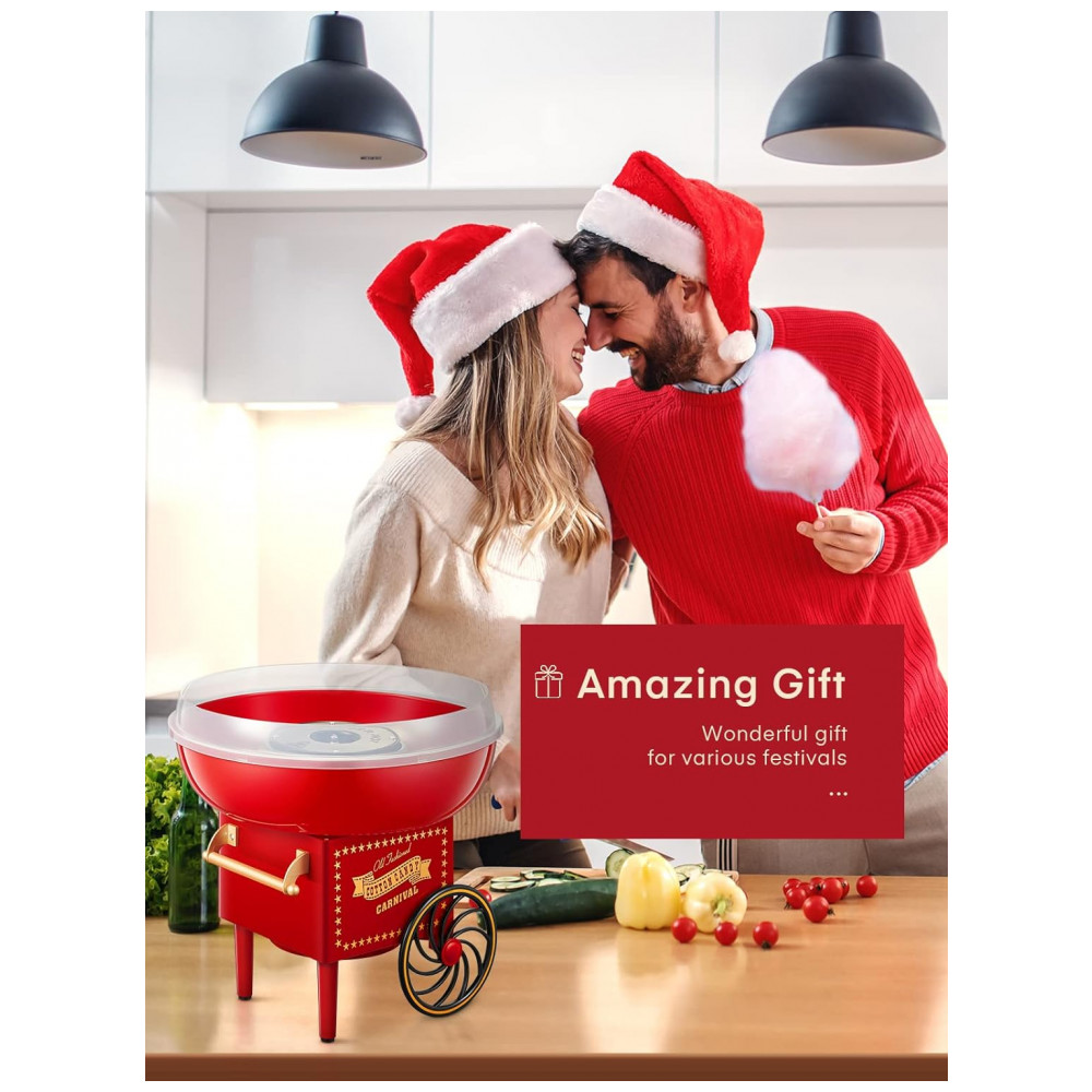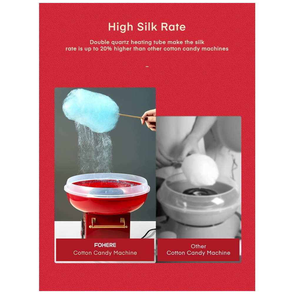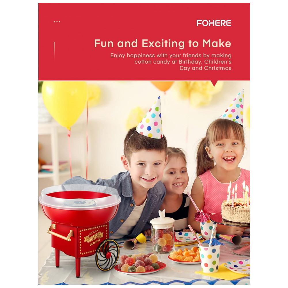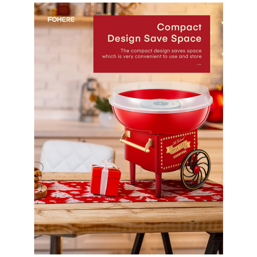 Máquina de Algodão Doce Elétrica com Colher de Açúcar e 10 Cones 110V FOHERE Vermelho