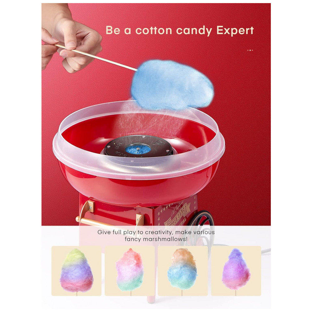 Capa protetora transparente incluídaO protetor de aro evita que o algodão doce voe. A borda de plástico transparente permite que os espectadores vejam seus doces sendo girados sem chegar muito perto da fonte de calor. Isso também facilita a supervisão quando você quer deixar as crianças tentarem fazer algodão doce.