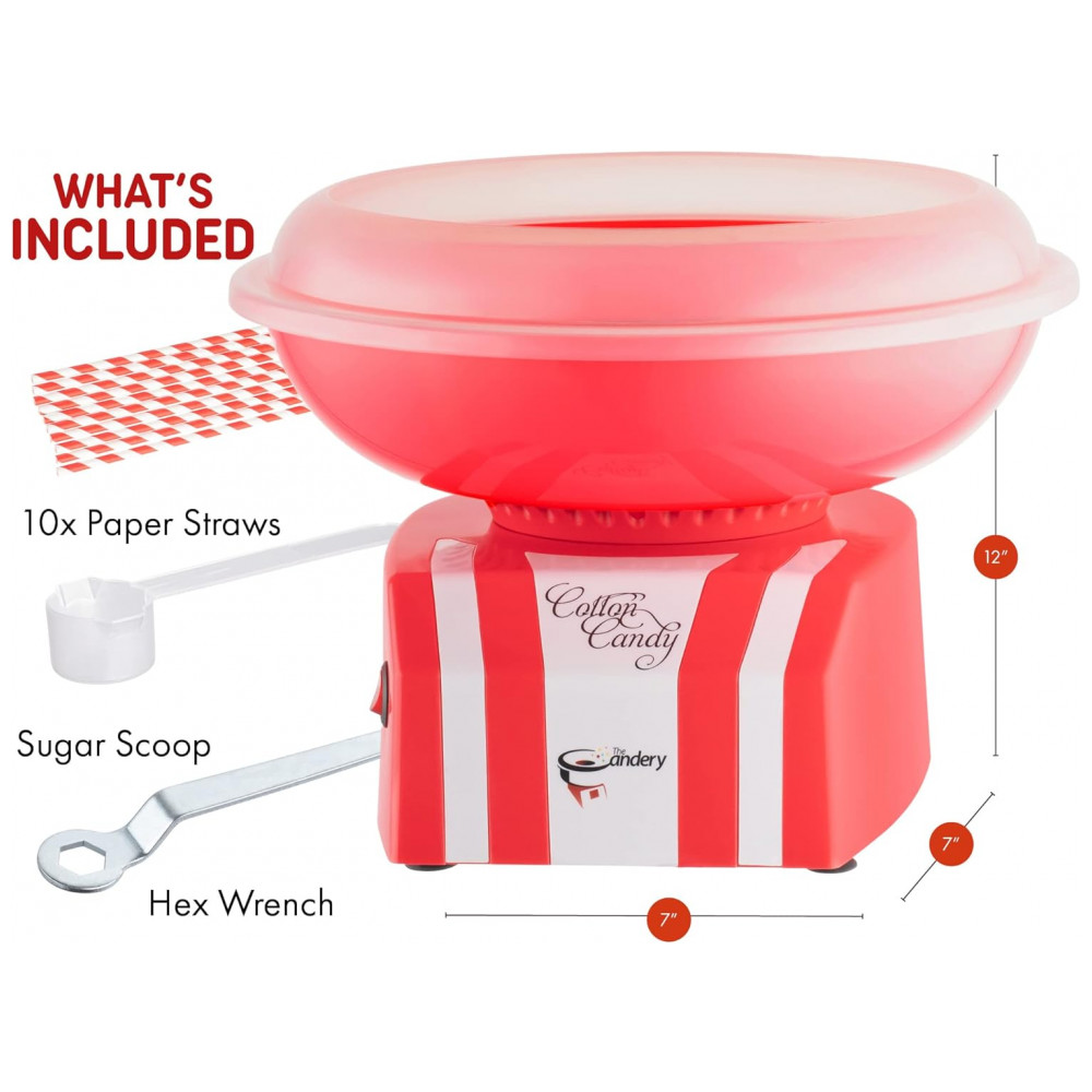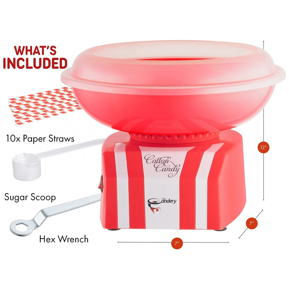 Máquina de Algodão Doce Elétrica com Colher de Açúcar e 10 Cones 110V The Candery Vermelha