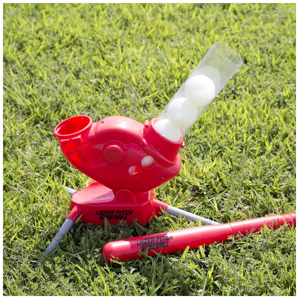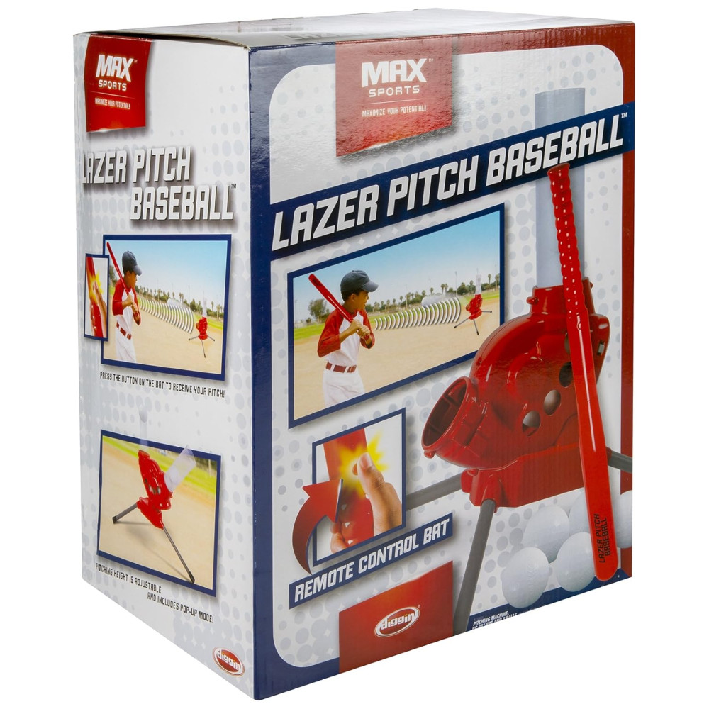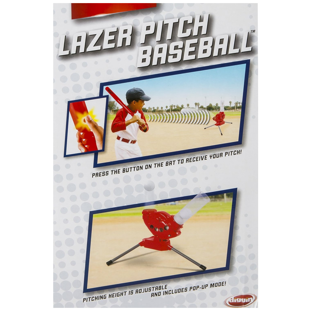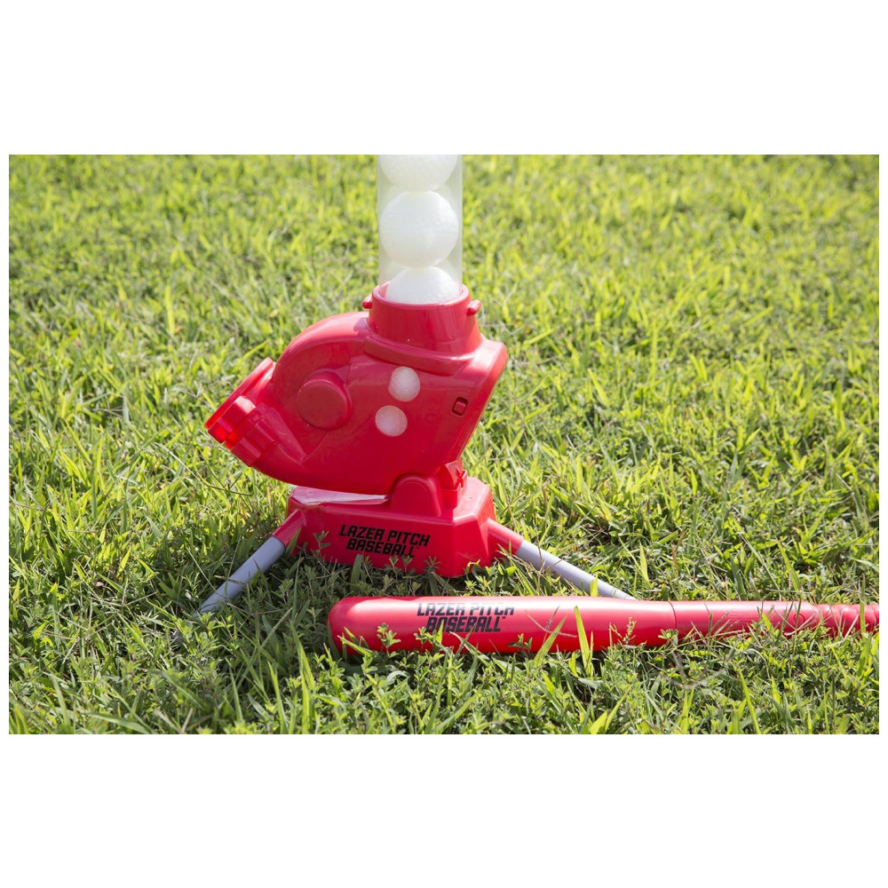 Lazer Pitch Baseball é a máquina de arremesso perfeita para crianças que desejam praticar seu swing de rebatidas no quintal. Com ângulos de arremesso ajustáveis, variando de bolas rápidas normais a lobs de softball e pop ups de 90 graus para iniciantes, a máquina pode arremessar bolas de plástico com precisão até 7,6 metros de distância. A luz vermelha confirma que um lançamento está chegando, permitindo que as crianças se preparem para rebater. O Lazer Pitch Baseball vem com uma máquina de arremesso, um taco de 66 cm com controle de rádio e 5 bolas. Além disso, possui um modo automático que dispara arremessos a cada 8 segundos, permitindo que as crianças usem seu próprio taco. Projetado para crianças a partir de 5 anos, o Lazer Pitch Baseball ajuda a ensinar o tempo e as habilidades necessárias para se tornar uma estrela no campo de beisebol. A unidade requer 4 baterias D e 1 9V, não inclusas. É uma máquina portátil de arremesso de quintal para crianças, ideal para quem avança no beisebol teeball e no conjunto de rebatidas T Batting Toy Baseball.