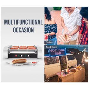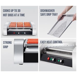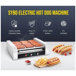 Máquina de Assar Salsichas SYBO 30 Salsichas 11 Rolos de Grade com Bandeja de Gotejamento em Aço Inoxidável Removível 1430W Ideal para Uso Comercia