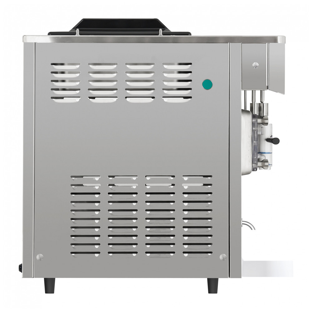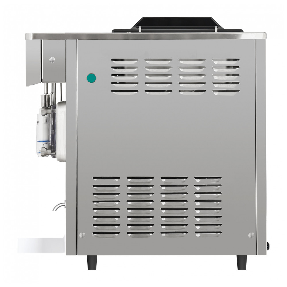 Com a Máquina de Bebidas Congeladas Spaceman 6455C, você terá até 192 porções de 300 ml por hora. Controles duplos permitem servir diferentes bebidas de cada compartimento. Troque produtos e ajuste a viscosidade em menos de 30 segundos com design suspenso. A baixa temperatura do evaporador permite o uso de bebidas alcoólicas. Equipada com misturador V3 de uma peça, garante qualidade e viscosidade ideais. Perfeita para slushies ou coquetéis congelados, esta máquina é ideal para autosserviço ou uso atrás do balcão, trazendo variedade ao seu menu e impulsionando as vendas! Com compartimentos refrigerados e controle de viscosidade ajustável, garante alto desempenho, fácil operação e, acima de tudo, um produto final saboroso. Esta máquina pode servir 2 sabores diferentes, oferecendo variedade ou capacidade extra para aquela bebida preferida dos clientes! Portas transparentes permitem que os clientes vejam as bebidas dentro da máquina, atraindo ainda mais a atenção. Equipada com dois cilindros de congelamento de 3,79 litros e dois compartimentos de 8,05 litros, pode ser usada com produtos lácteos e não lácteos. Os compartimentos refrigerados mantêm as misturas abaixo de 4°C até serem bombeadas nos cilindros de congelamento, sendo adequada até para bebidas alcoólicas. Para segurança, possui proteção contra congelamento quando o nível da mistura está baixo. Sinal luminoso de nível baixo ajuda a controlar os níveis do produto. Este modelo apresenta proteção contra pressão alta e prevenção de sobrecarga térmica para proteger o motor contra superaquecimento. O design suspenso permite controle máximo de viscosidade, ajustando a espessura desejada em menos de 30 segundos. Os agitadores e misturador V3 garantem qualidade e distribuição consistentes. A tecnologia de congelamento rápido resfria de forma eficaz, economizando energia. Utiliza fixadores estilo aeroespacial para facilitar a manutenção preventiva. O design refinado reduz as peças necessárias na montagem/desmontagem, simplificando a limpeza. Requer folga mínima de 15 cm de ambos os lados. Funciona com conexão elétrica de 110V, com cabo e plugue para fácil instalação.