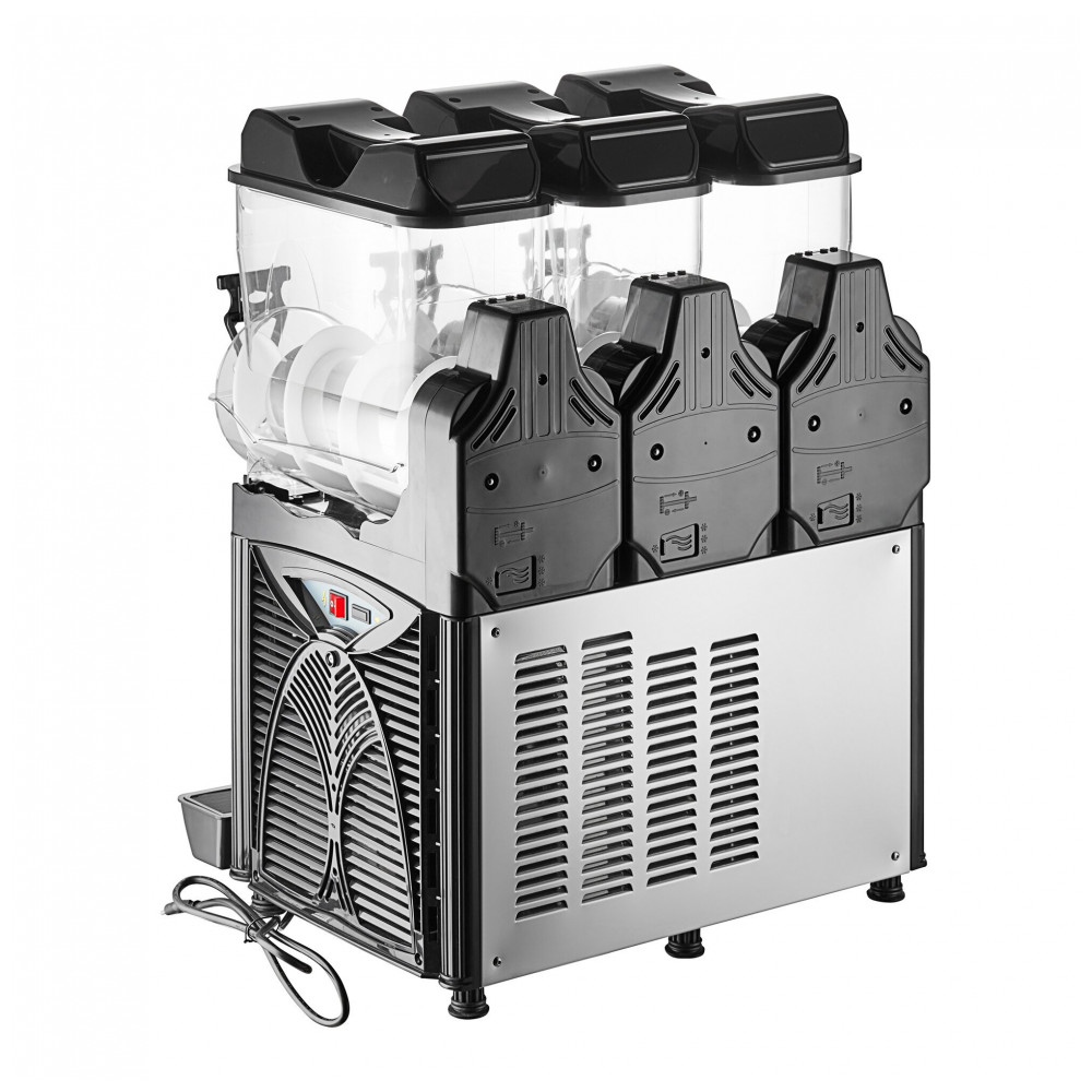 Apresentando controle ajustável de espessura, esta máquina triple permite misturar várias bebidas congeladas de uma só vez. Com estrutura durável de aço inoxidável e bandeja removível para limpeza fácil, é ideal para ambientes de baixo uso. Perfeito para tratar seus clientes com smoothies, slushies e granitas refrescantes, este dispensador triplo certamente impulsionará as vendas. As tigelas transparentes de 9,8 litros oferecem alta visibilidade, atraindo potenciais clientes para experimentarem suas bebidas. Mantenha seus clientes felizes e hidratados com suas deliciosas misturas congeladas servidas de forma fácil e eficiente.