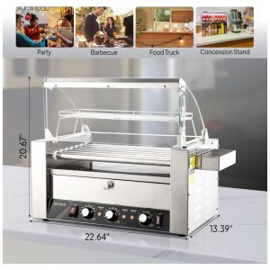 Com capacidade para até 18 cachorros-quentes, a máquina de enrolar salsichas é equipada com 7 rolos de aço inoxidável e um motor potente de 1200 W, garantindo um cozimento rápido e eficiente. Compacta e fácil de armazenar, é ideal para festas, eventos, reuniões e barracas de comida.