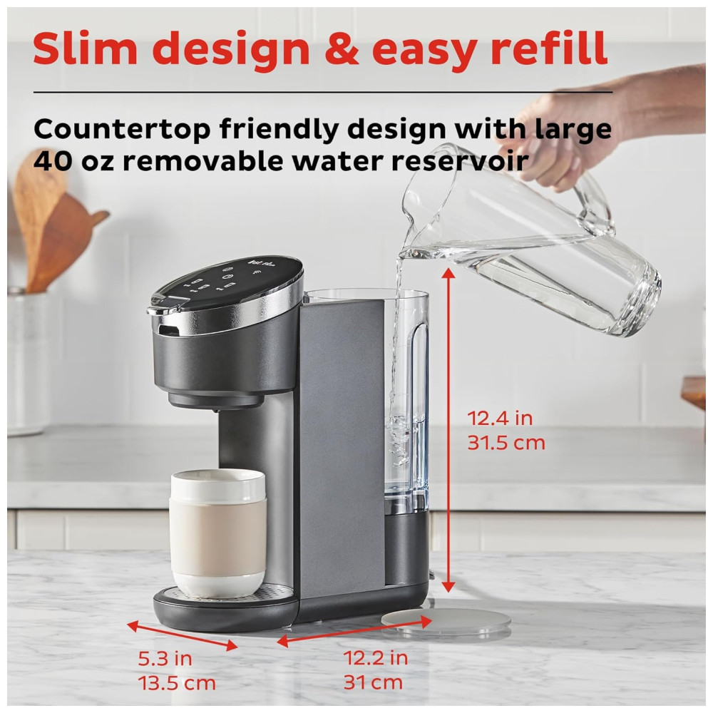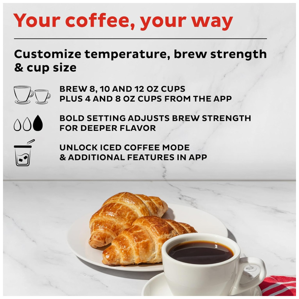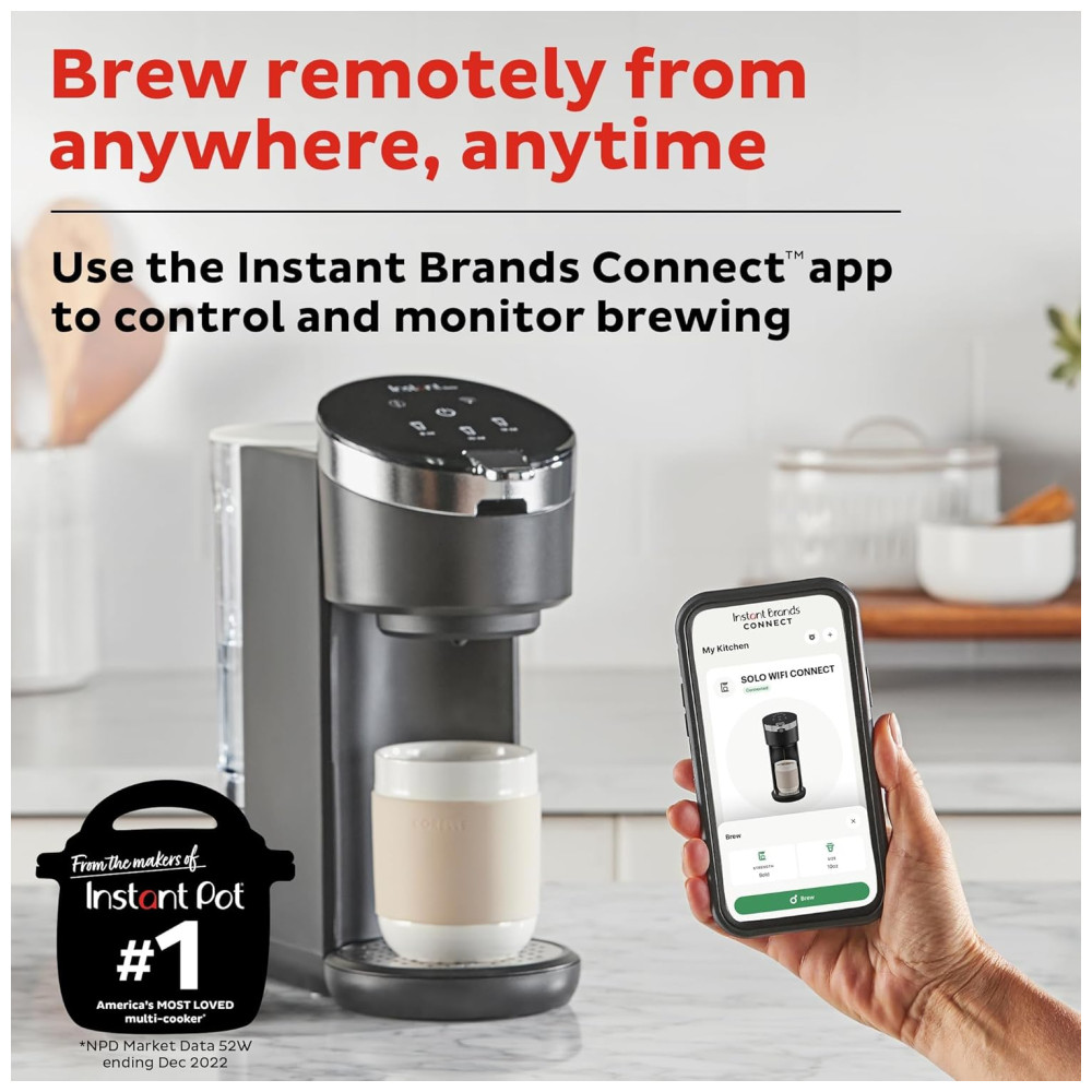 É possível adicionar leite de sua preferência para finalizar seu café gelado perfeito. A cafeteira também conta com o aplicativo Instant Brands Connect, que permite controlar a produção de cerveja remotamente, em qualquer lugar e a qualquer hora. Com a opção de 3 tamanhos diferentes de preparação, é possível preparar sua única porção de café quente em apenas 90 segundos. A cafeteira possui um grande reservatório de água removível, que pode ser lavado na máquina de lavar louça.