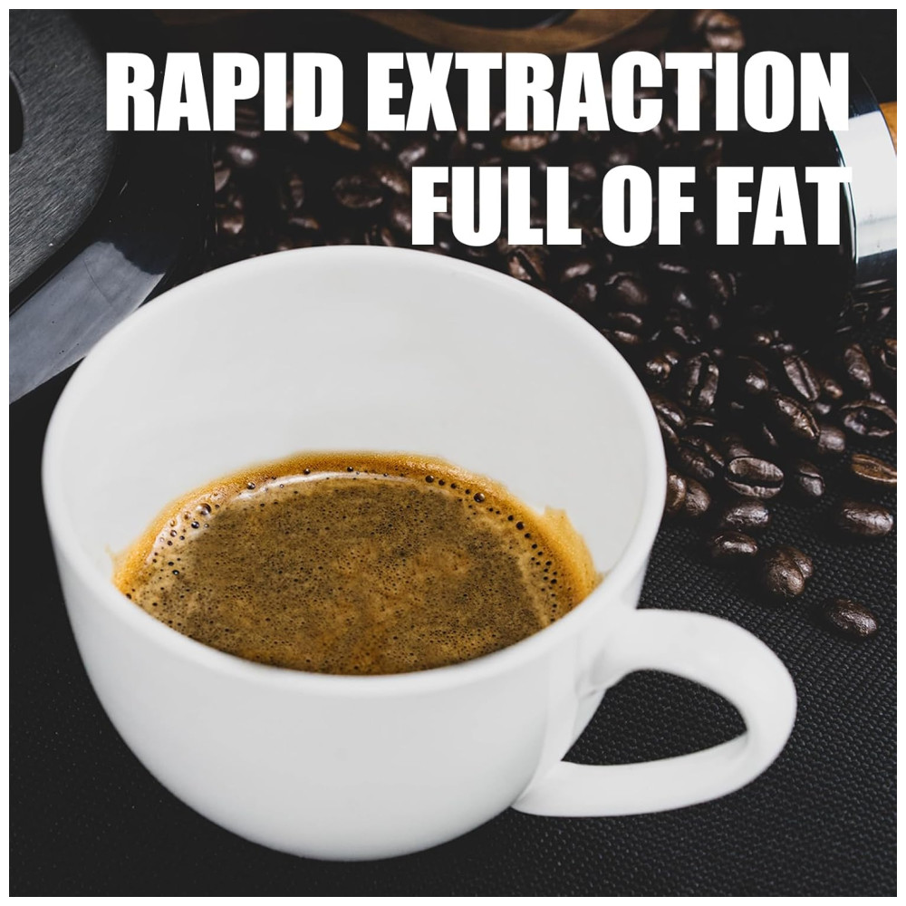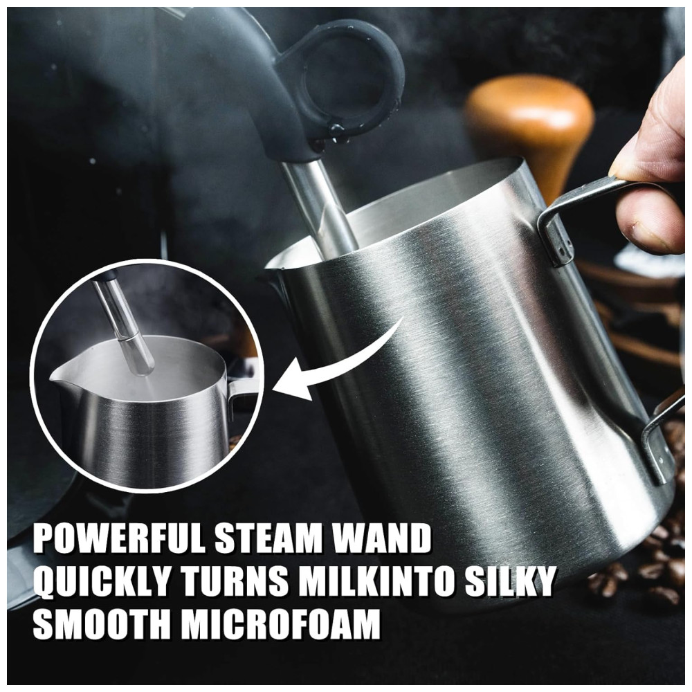 Máquina de café expresso com design em ABS, que é mais leve e fácil de manter do que o aço inoxidável, além de ser mais ecologicamente correto. Possui potência de 1450W e moedor integrado que pode converter grãos de café em café expresso em apenas um minuto. A máquina de cappuccino permite fazer café com leite e tem 15 opções de moagem de precisão para ajustar, um tamper magnético removível manual e um manômetro de feedback extraível.