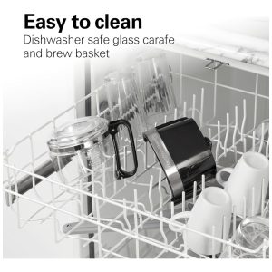 A Cafeteira Hamilton Beach combina um design compacto com um toque moderno, perfeita para quem busca um aparelho funcional e que se encaixa bem em qualquer ambiente de cozinha. Seu acabamento em inox oferece durabilidade e resistência, enquanto o visual elegante em preto e prata adiciona um toque de sofisticação.