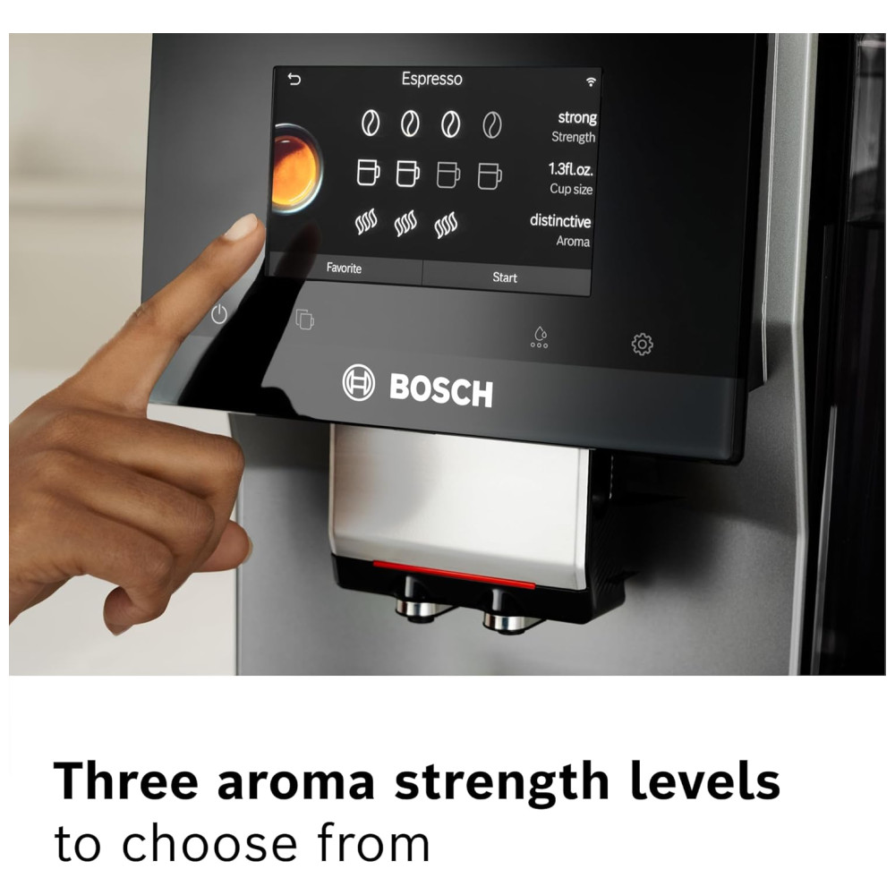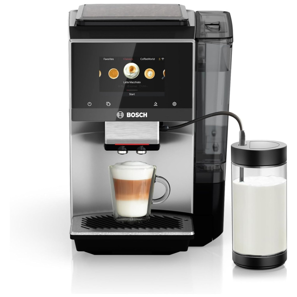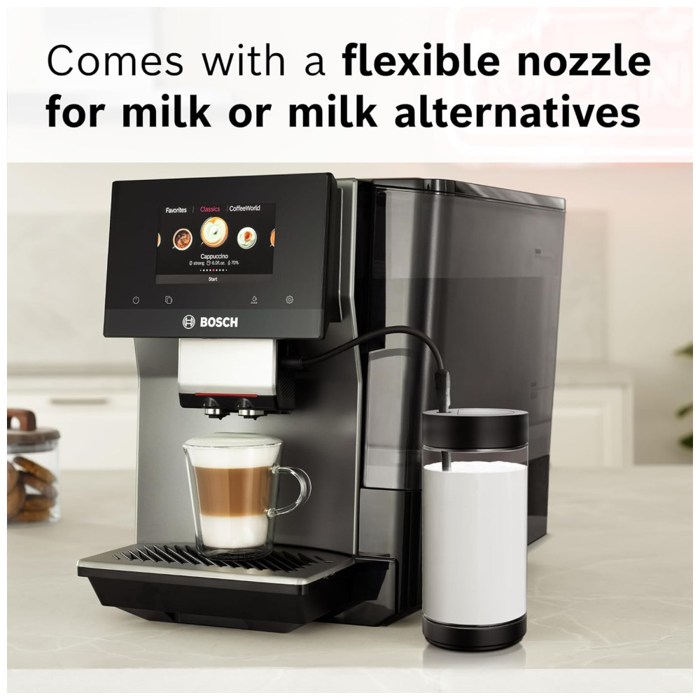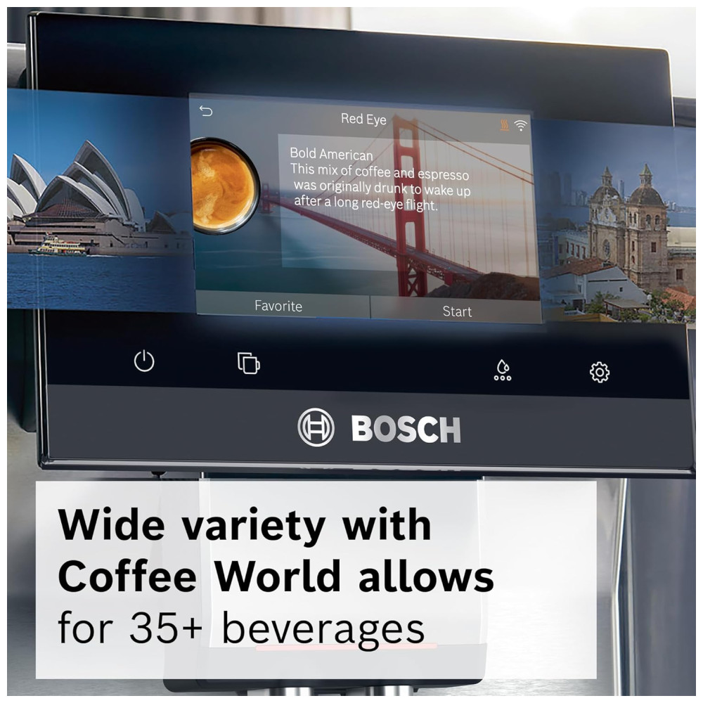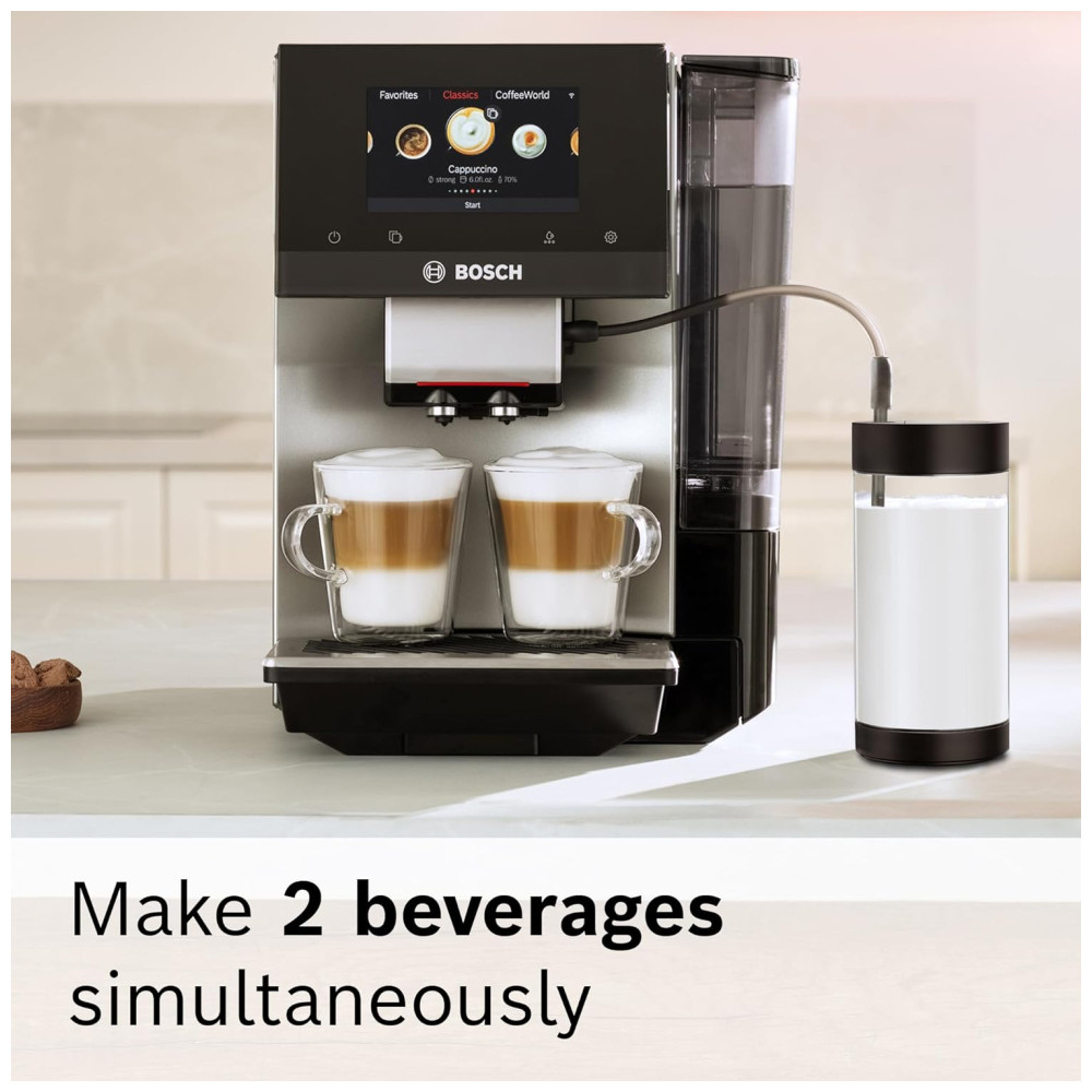 Máquina de Café com Home Connect Recipiente de Leite em Vidro 36 Variedades de Café com Coffee World e Xícara Dupla 110V 800W Bosch Série 800 TPU60501 Prata Metálico