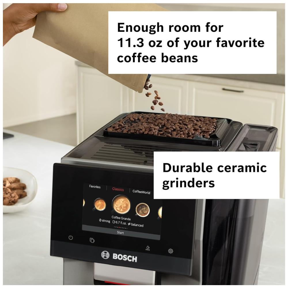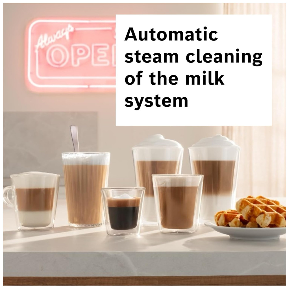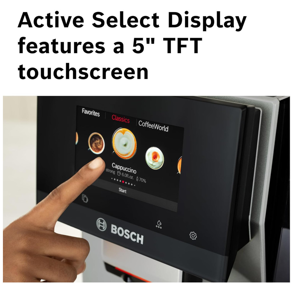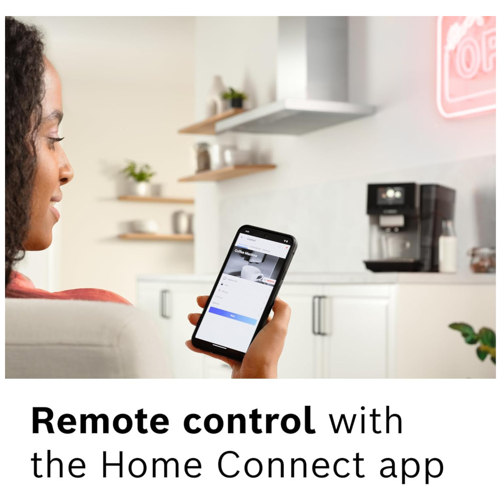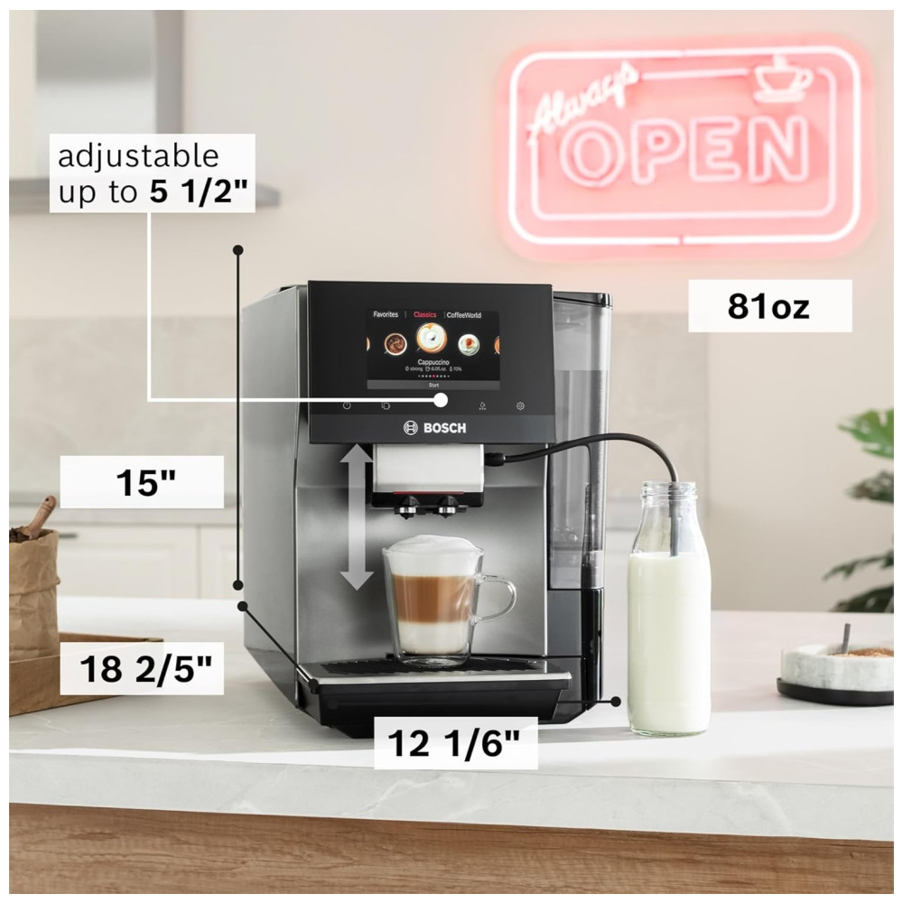 Máquina de Café com Home Connect Recipiente de Leite em Vidro 36 Variedades de Café com Coffee World e Xícara Dupla 110V 800W Bosch Série 800 TPU60501 Prata Metálico