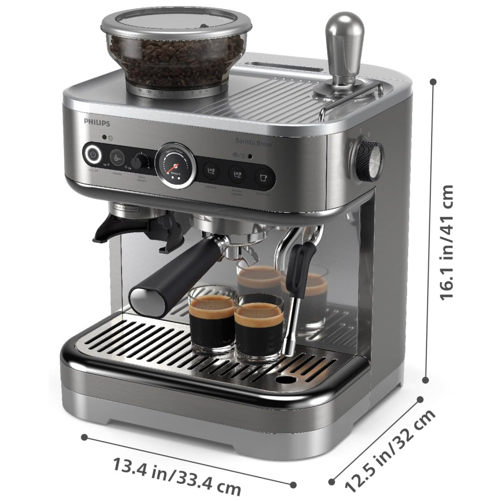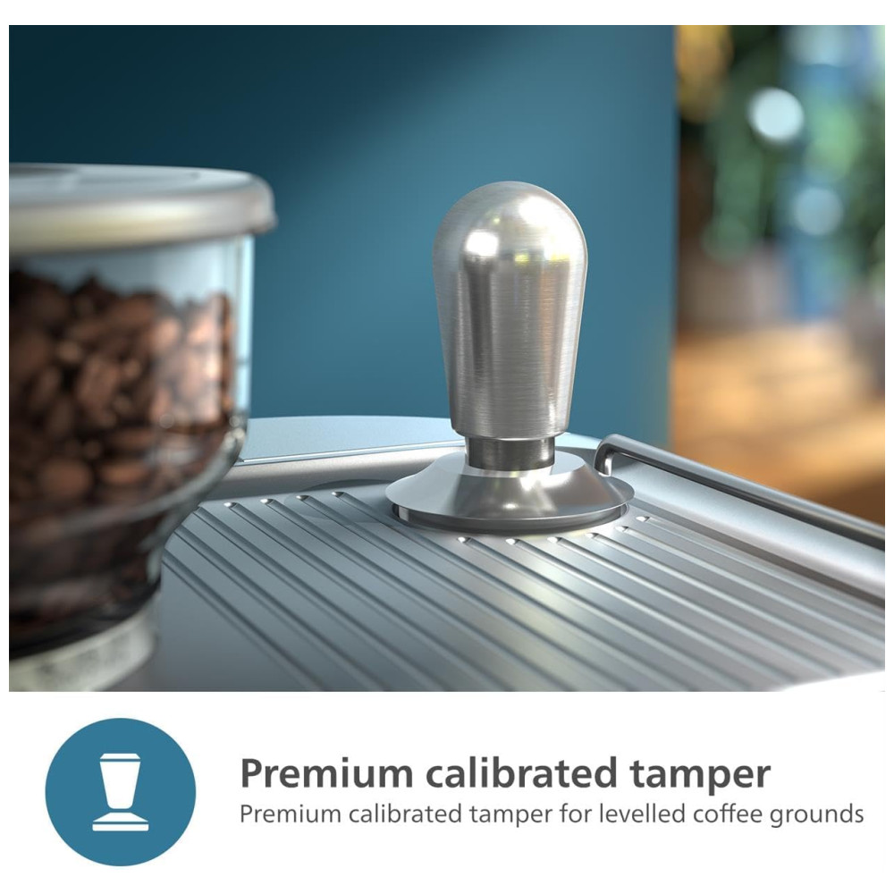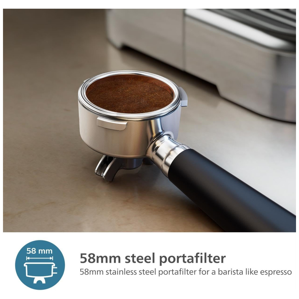 Desfrute de uma experiência de café expresso de qualidade de barista em casa com a máquina de café expresso Philips Barista Brew. Com sua orientação intuitiva, você pode facilmente preparar um café aromático e rico com o sistema de compactação seguro de bancada calibrado premium. O recipiente de grãos de 250g garante frescor aos seus grãos, enquanto o porta filtro de aço inoxidável de 58 mm e cestos de filtro simples de parede dupla permitem que você crie cervejas com qualidade de barista.