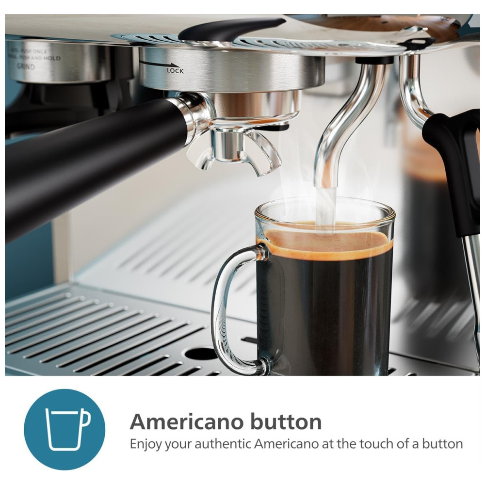 Máquina de Café com Moedor de 250g botão Americano e Bocal de Leite 110V PHILIPS Barista Brew PSA3218/01 Prata Metal